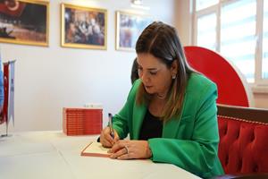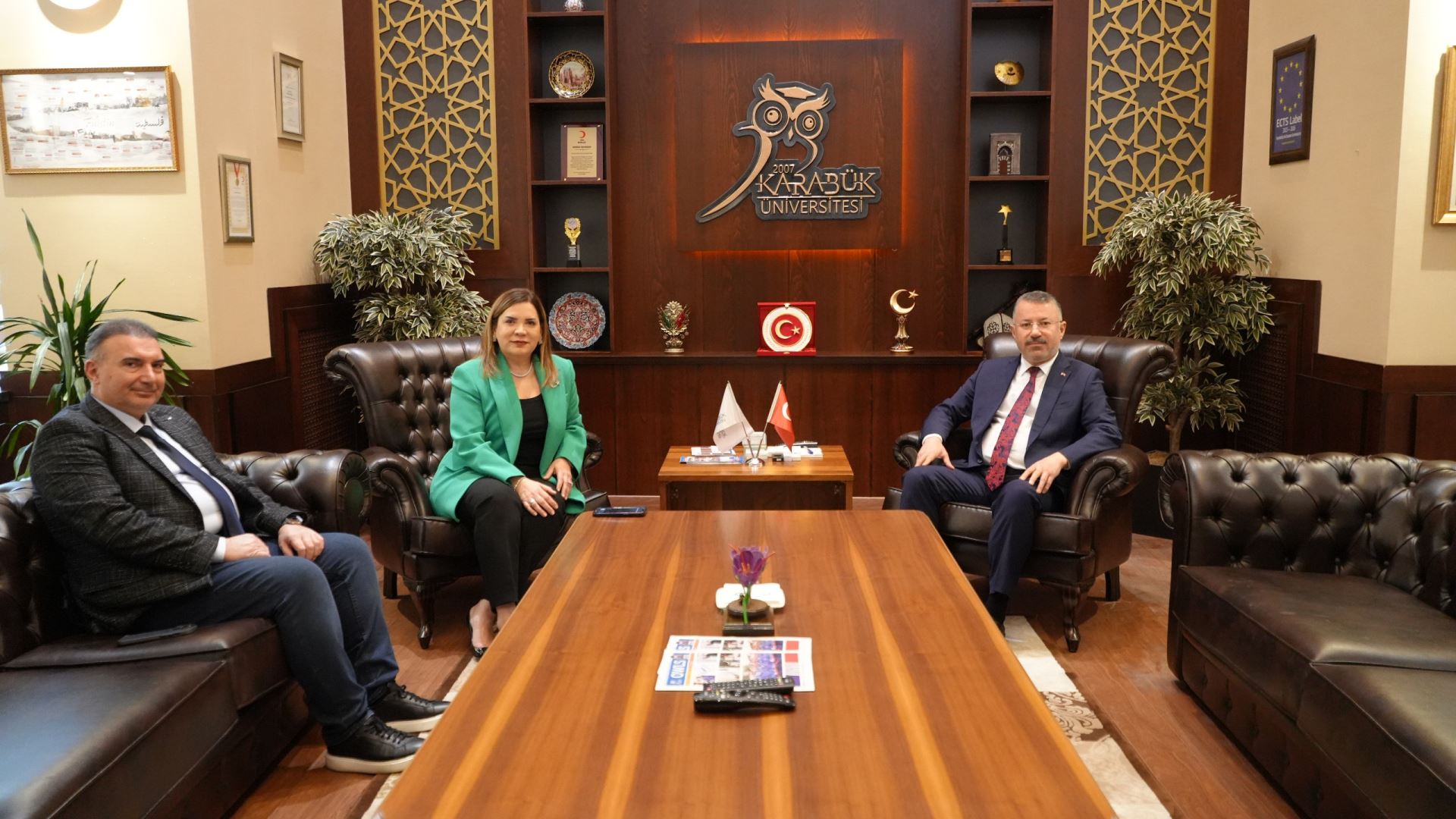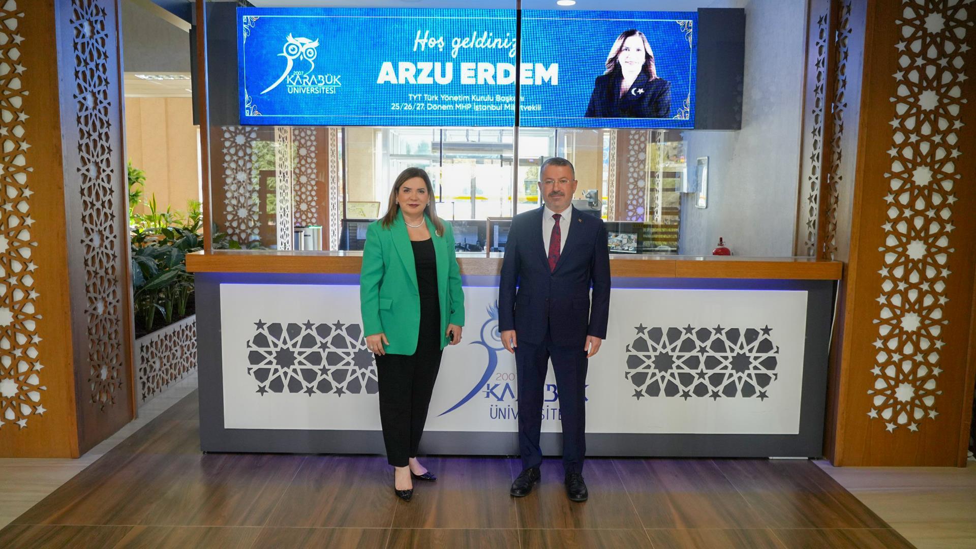Söyleşi öncesinde Rektör Prof. Dr. Fatih Kırışık, Arzu Erdem’i makamında ağırladı. Görüşmede eğitim, kültür ve sanat alanlarında yürütülebilecek iş birlikleri ele alındı. Ayrıca, Erdem “Dijital Vatan” isimli kitabını Rektör Kırışık’a hediye etti. Ziyarette Rektör Danışmanı Dr. Öğr. Üyesi Murat Bulut da yer aldı.