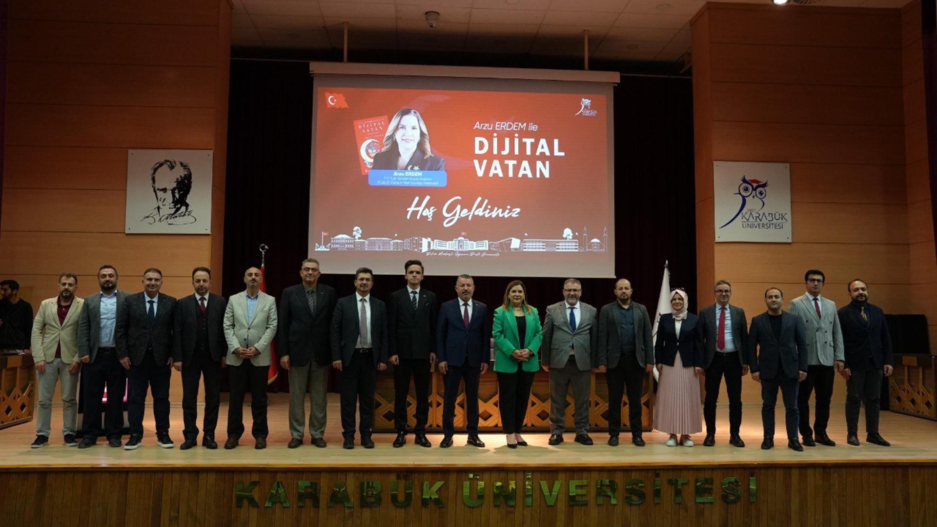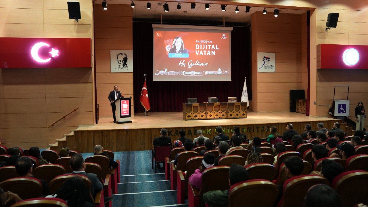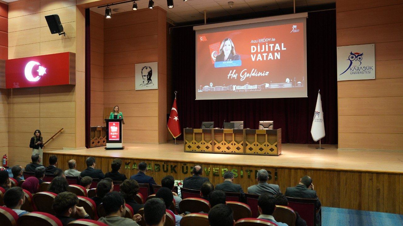 Karabük Üniversitesinde düzenlenen “Arzu Erdem ile Dijital Vatan” söyleşisinde, dijital çağda milli bilinç, güvenlik ve farkındalık konuları ele alındı.