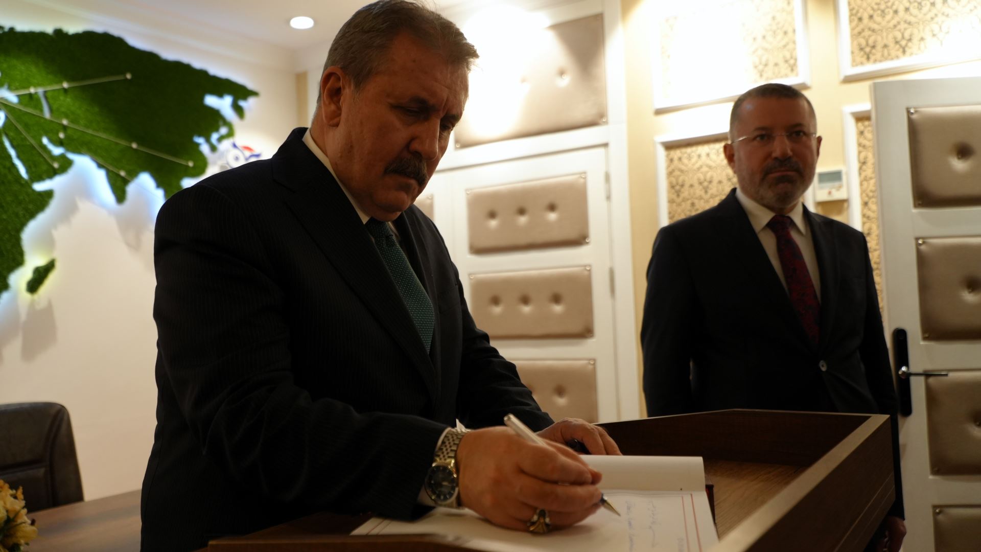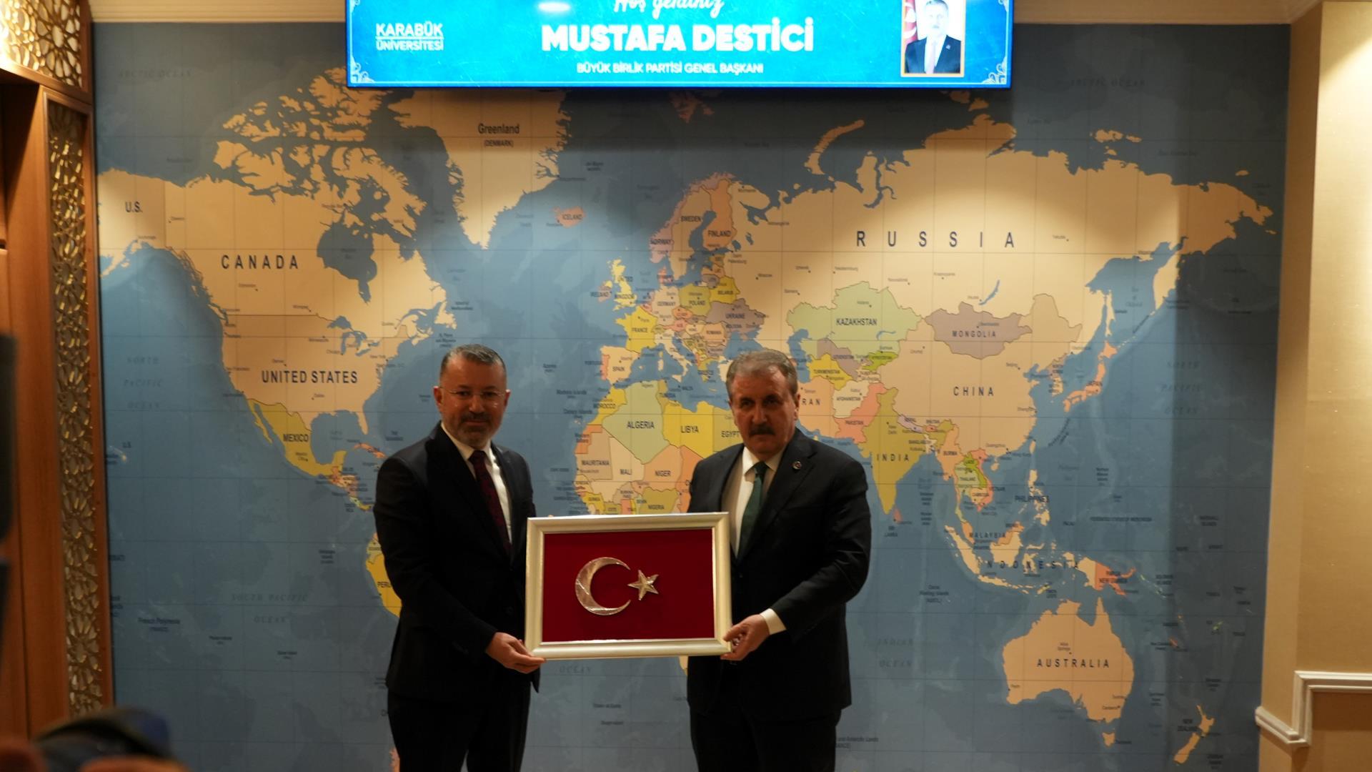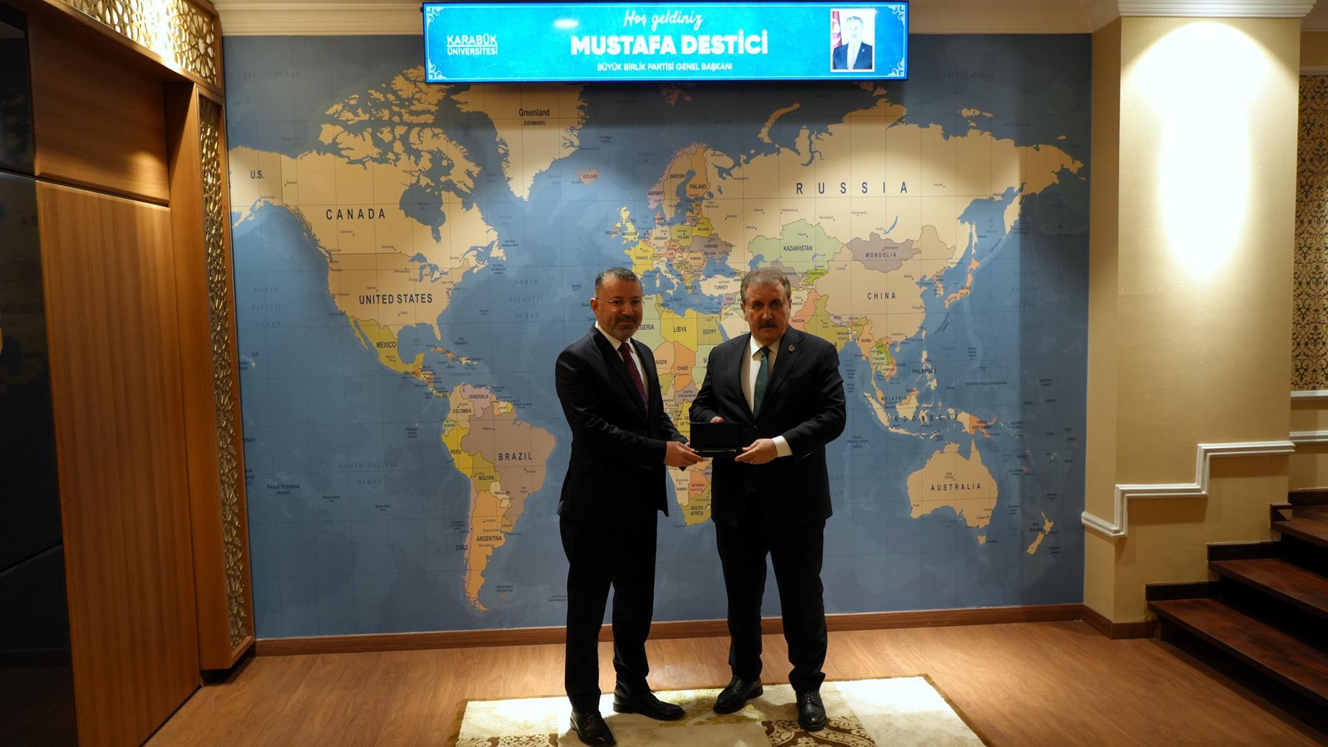 Büyük Birlik Partisi Genel Başkanı Mustafa Destici, Karabük Üniversitesinin şeref defterini imzaladı.