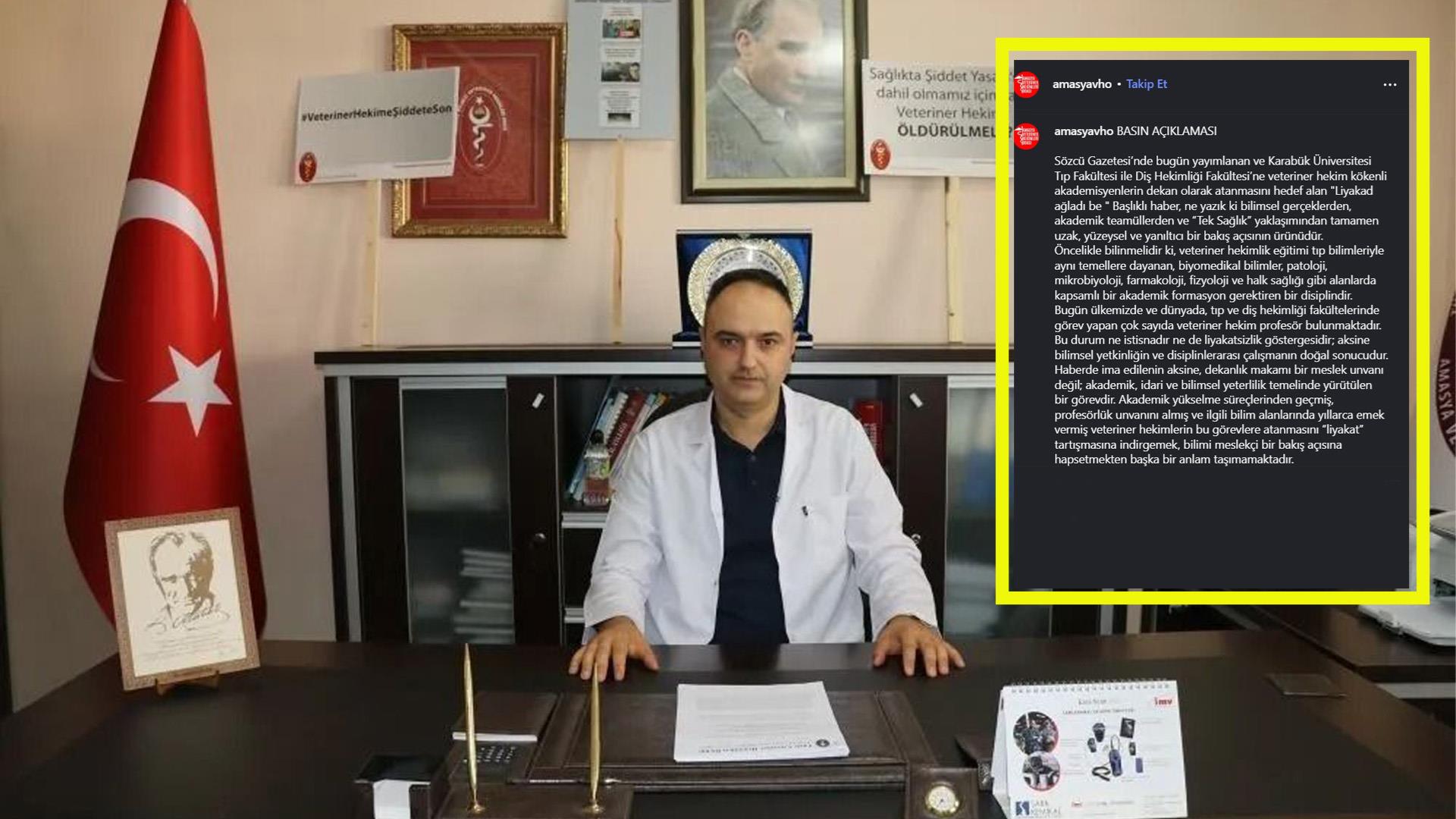 Yapılan paylaşımda ayrıca; Amasya Veteriner Hekimleri Odası, Sözcü Gazetesini akademik konularda haberler yaparken bilimsel gerçekler ve uzman görüşleri temelinde, üniversitelerin akademik yapısına daha duyarlı olmaya ve sorumlu yayıncılığa davet etti. Meslekler arası ayrımcılığı körükleyen, bilimi basitleştiren ve kamuoyunu yanıltan yaklaşımların akademiye ve topluma fayda sağlamayacağını vurgulandı.