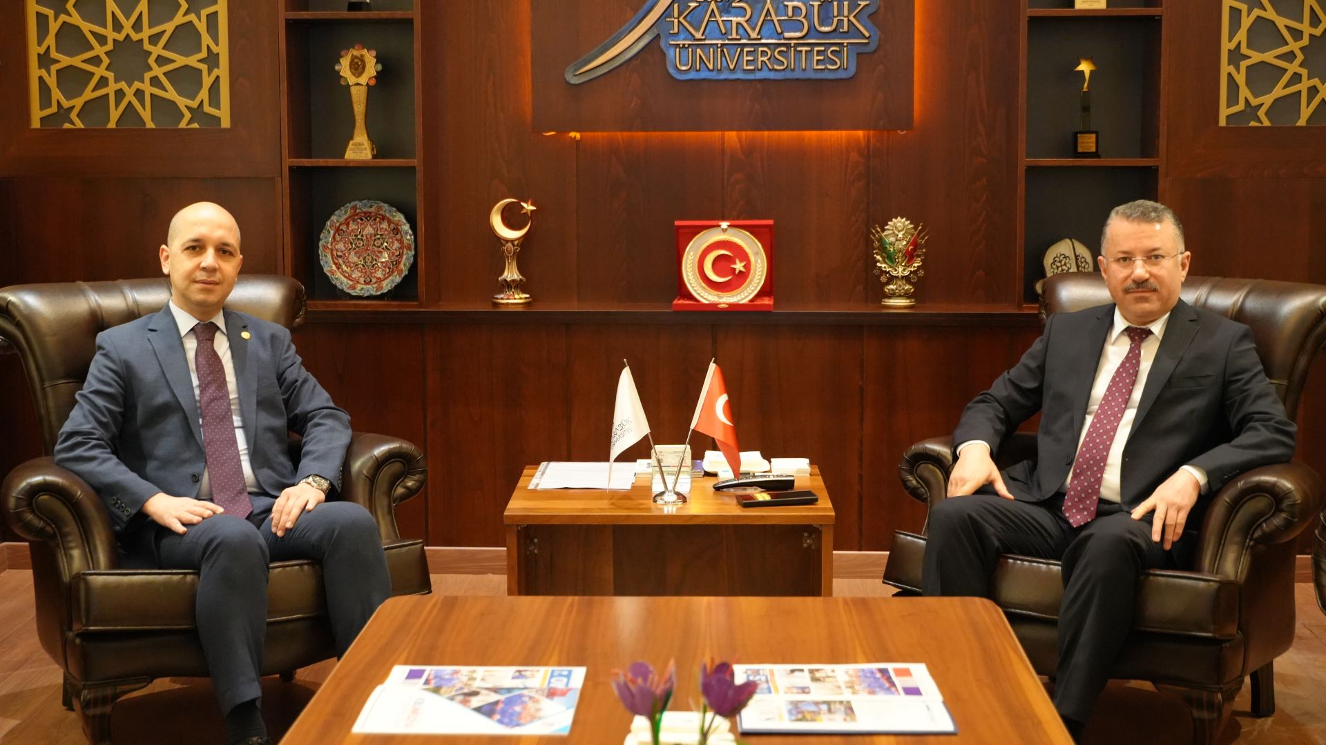 Karabük İdare Mahkemesi Başkanı Sefa Savaş Kan, Karabük Üniversitesi Rektörü Prof. Dr. Fatih Kırışık’ı makamında ziyaret etti.