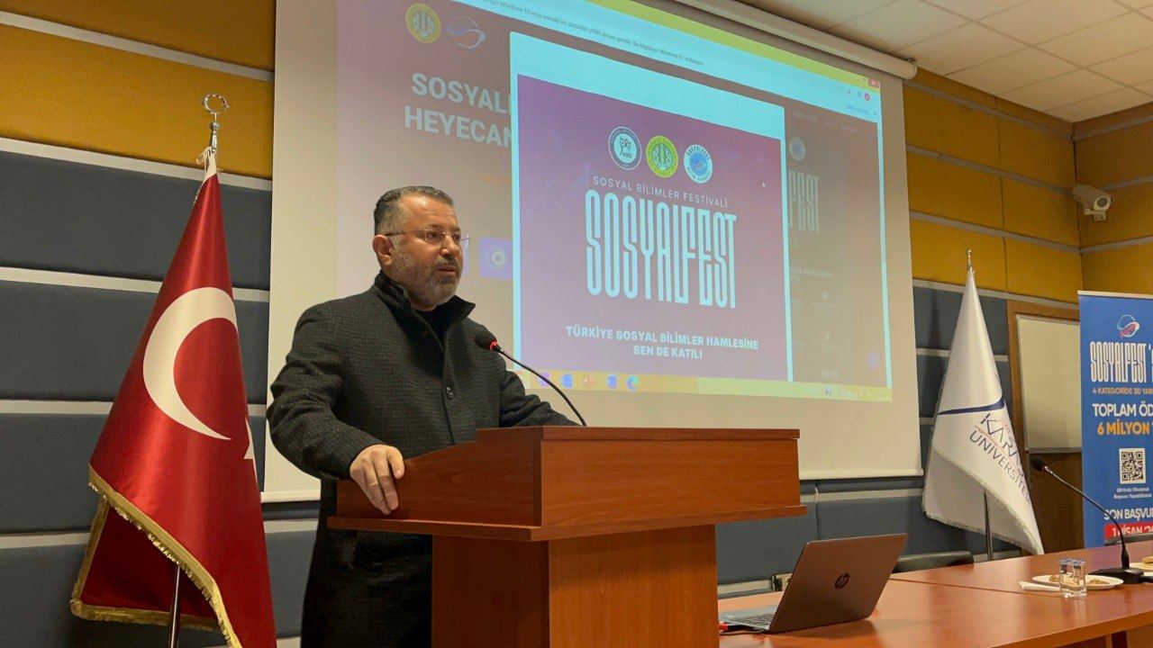 KBÜ Rektörü Prof. Dr. Fatih Kırışık, Sosyalfest’in gençlerin fikir ve emeğiyle büyüyen bir organizasyon olduğunu belirterek gençlerin sürece aktif katılımının önemli olduğunu ifade etti. Konuşmasında dünyada yaşanan sorunlara da değinen Kırışık, küresel ölçekte artan problem, anlaşmazlık, suç ve bağımlılık gibi meselelerde devletlerin ve uluslararası kuruluşların zaman zaman yetersiz kalabildiğini, bu nedenle bireysel sorumluluk ve inisiyatifin önem kazandığını dile getirdi.