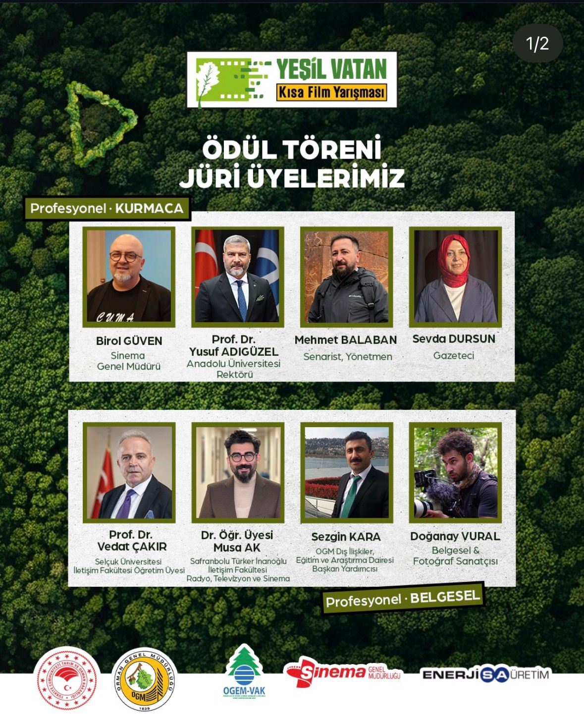 Orman Genel Müdürlüğü tarafından Enerjisa sponsorluğunda, OGEM-VAK ve Sinema Genel Müdürlüğü destekleriyle düzenlenen Yeşil Vatan Kısa Film Yarışması’nda ödüller sahiplerini bulurken, Karabük Üniversitesi akademisyenleri jüri ve danışmanlık görevleriyle yarışmaya katkı sundu.