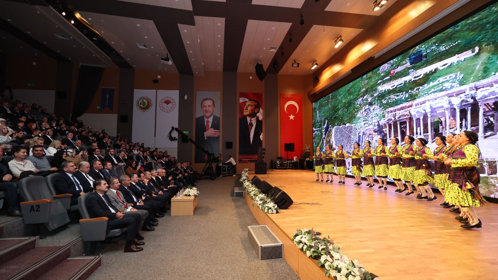 Konser ve halk oyunları gösterisiyle başlayan program, protokol konuşmalarıyla devam etti.