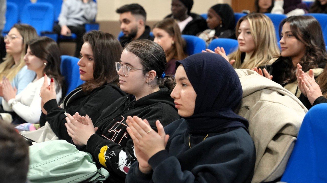 Endüstri Mühendisliği Kulübü Başkanı Sena Yılmaz, “Amacımız sadece deneyim paylaşımını dinlemek değil, sizlerle birlikte daha interaktif bir ortamda düşünmenizi ve kendi bakış açılarınızı oluşturmanızı sağlamak” dedi.