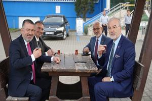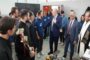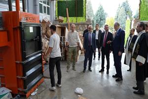 Açılış töreninin sonrasında Prof. Dr. Fatih Kırışık, Doç. Dr. Mustafa Hulki Cevizoğlu’na Karabük Üniversitesi Merkez Kampüsü’nü tanıttı. Teknofest takımlarının çalışmalarını yürüttüğü teknoloji atölyeleri ile geri dönüşüm merkezlerini konuğuna gezdiren Rektör Kırışık, ayrıca rehabilitasyon merkezleri hakkında da bilgi verdi.