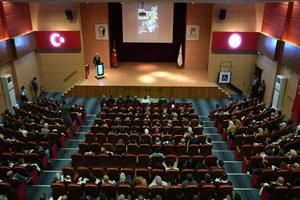 Konuşmasının ardından Cevizoğlu’na, Rektör Kırışık tarafından teşekkür belgesi ile Türk Bayrağı takdim edildi.