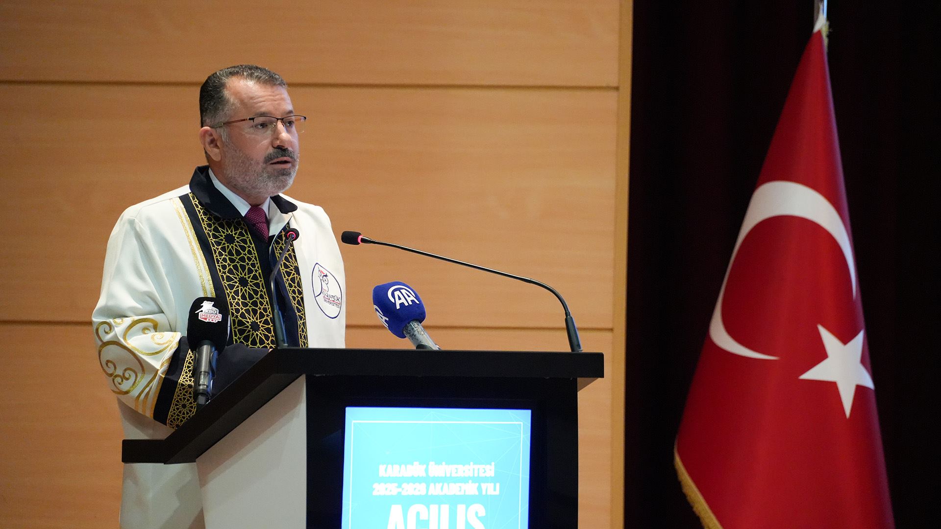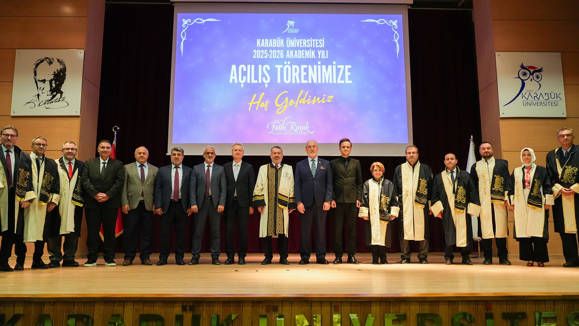 Karabük Üniversitesi (KBÜ) 2025–2026 Akademik Yılı Açılış Töreni, 15 Temmuz Şehitler Konferans Salonu’nda yoğun bir katılımla gerçekleştirildi.