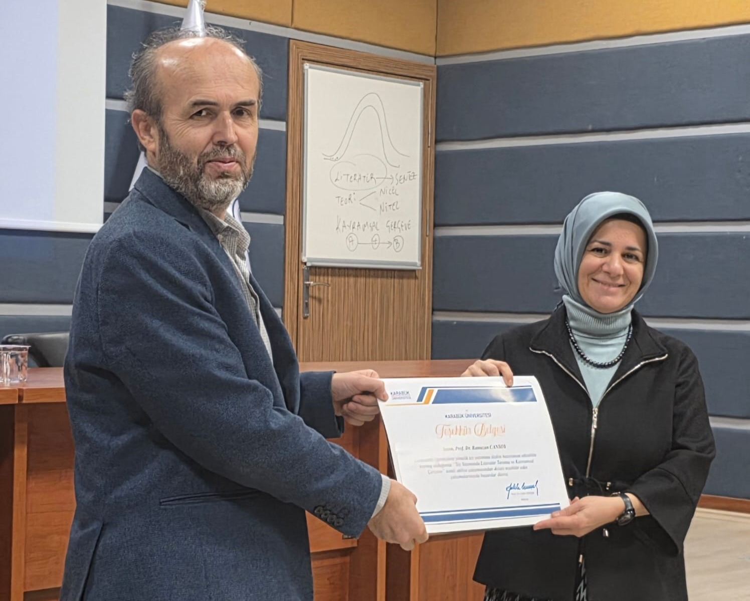 Program sonunda Lisansüstü Eğitim Enstitüsü Müdürü Prof. Dr. Zeynep Özcan, katkılarından dolayı Prof. Dr. Cansoy’a teşekkür belgesi takdim etti.
