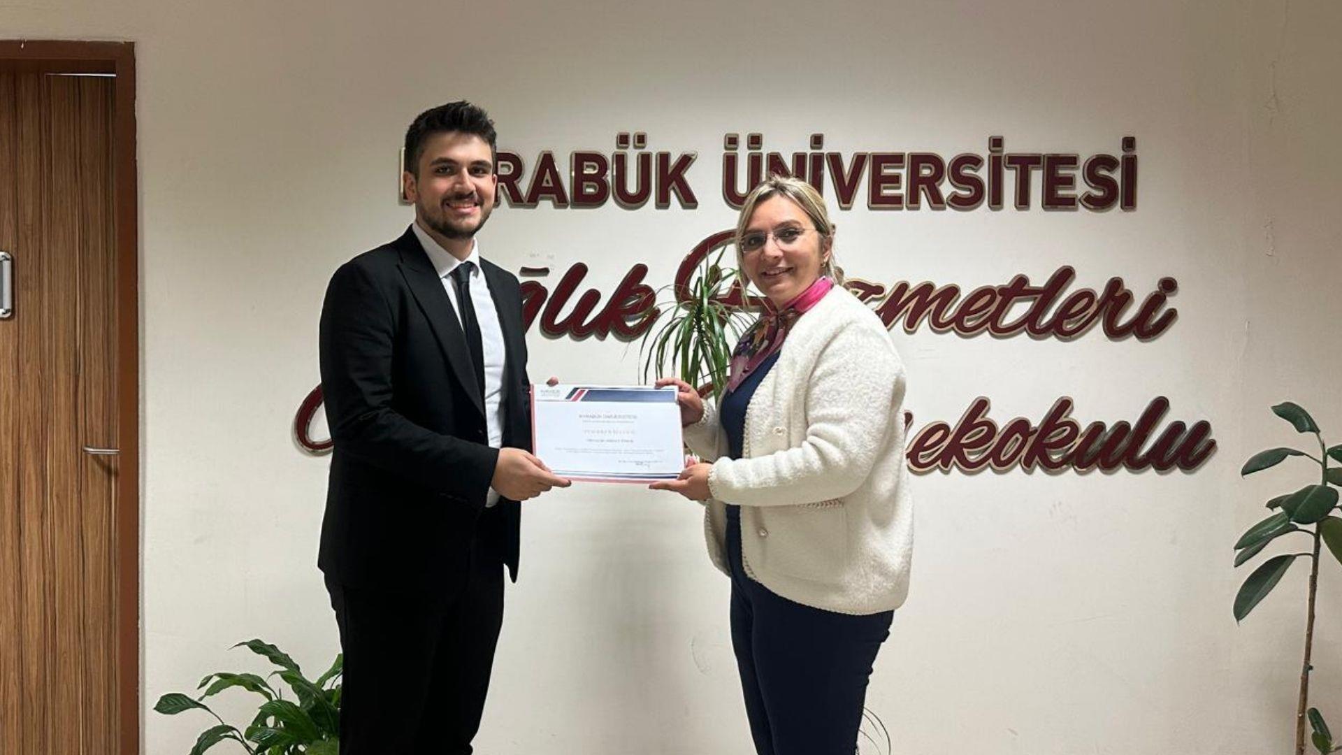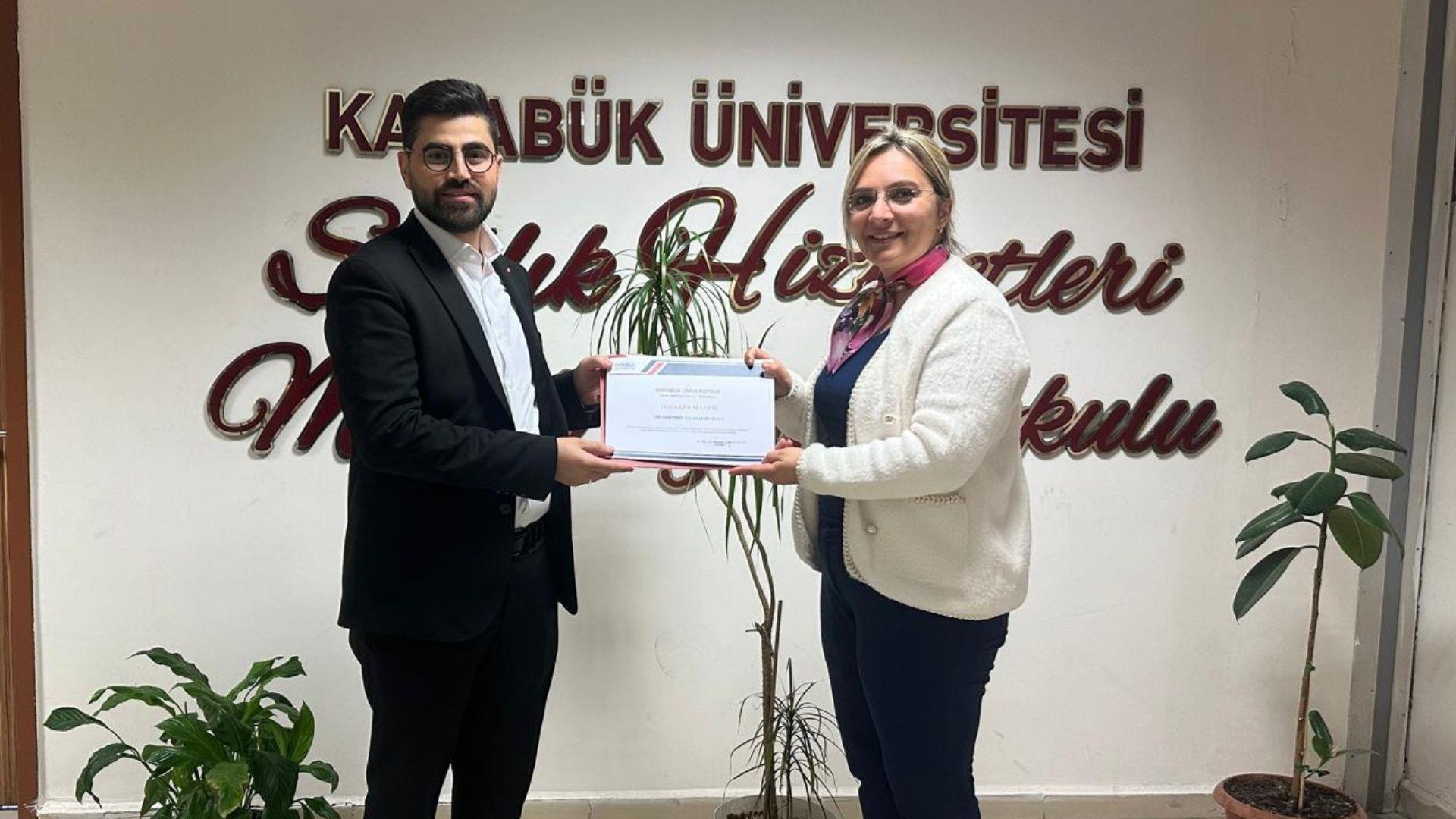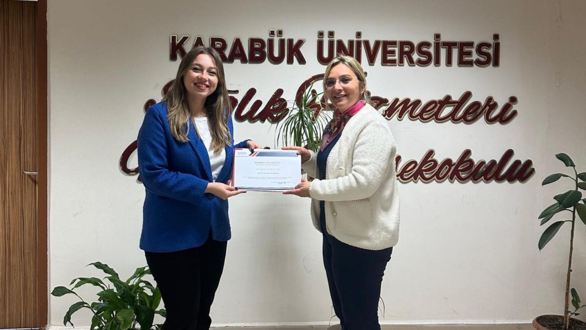 Program sonunda Sağlık Hizmetleri Meslek Yüksekokulu Müdürü Dr. Öğr. Üyesi Durdane Yılmaz Güven, eğitim sürecine katkı sunan akademisyenlere ve sektör temsilcilerine teşekkür belgesi takdim etti.