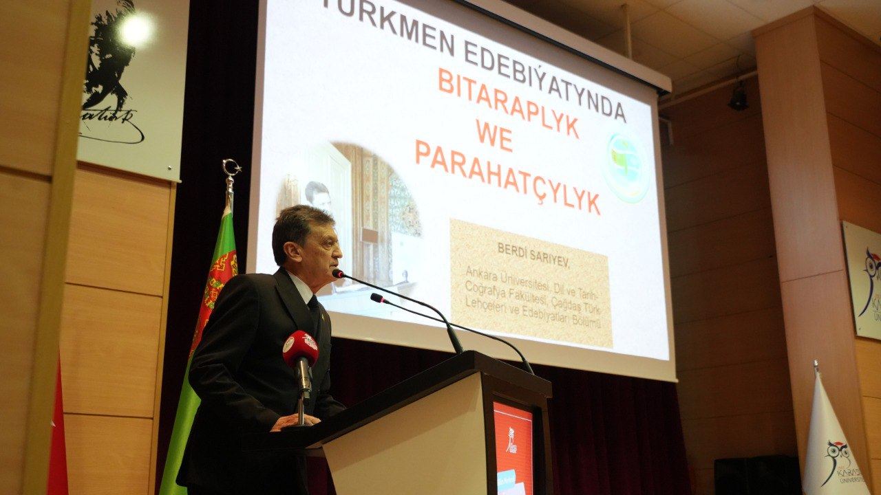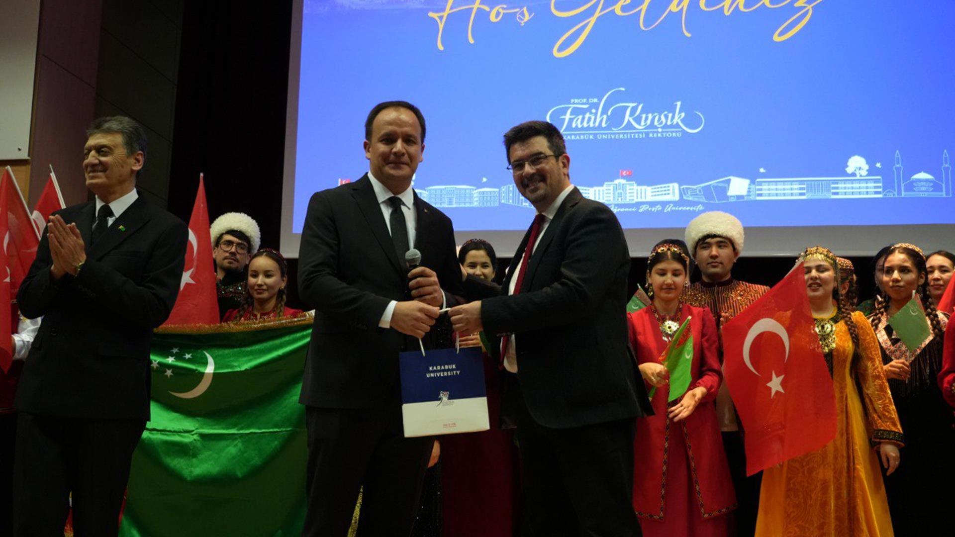 Karabük Üniversitesinde düzenlenen programda, Türkmenistan’ın Daimi Tarafsızlık Statüsü’nün 30. yılı ve Birleşmiş Milletler tarafından 2025’in “Uluslararası Barış ve Güven Yılı” ilan edilmesi dolayısıyla iki ülke arasındaki kardeşlik bağları vurgulandı.