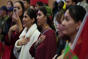 KBÜ ev sahipliğinde gerçekleştirilen program, saygı duruşu ve Türkiye ile Türkmenistan’ın milli marşlarının okunmasıyla başladı.