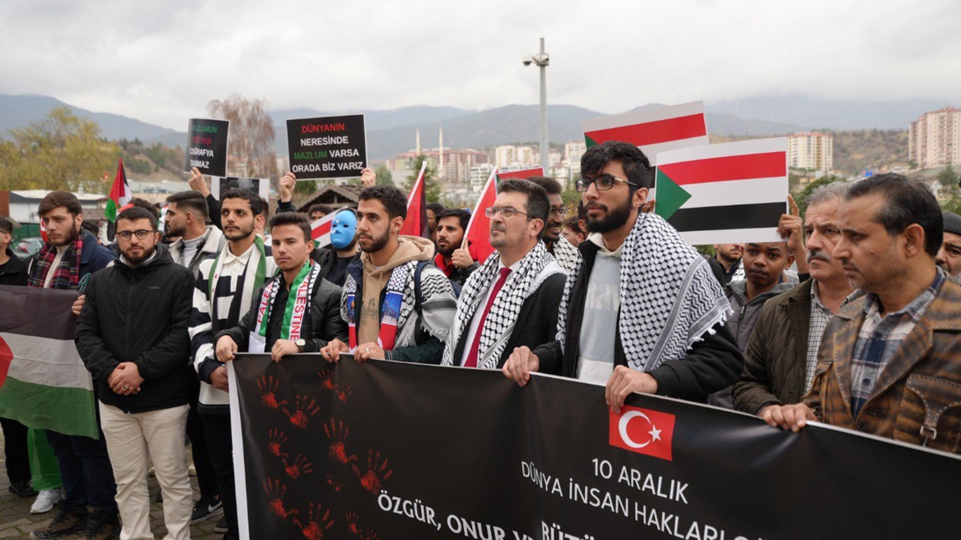 Karabük Üniversitesinde, 10 Aralık Dünya İnsan Hakları Günü dolayısıyla düzenlenen “Birlik Yürüyüşü”nde Filistin, Doğu Türkistan ve Sudan’daki insan hakları ihlallerine dikkat çekilerek zulme karşı ortak tepki gösterildi.