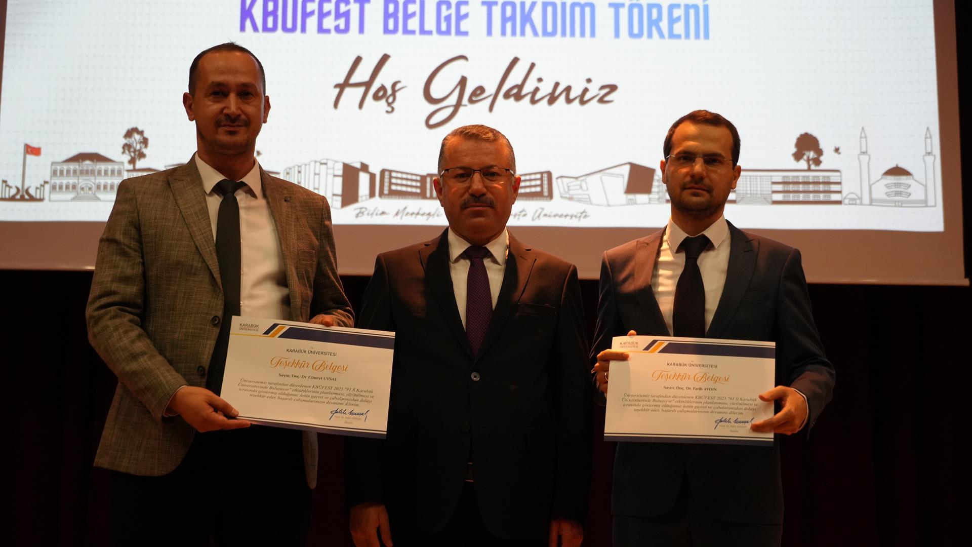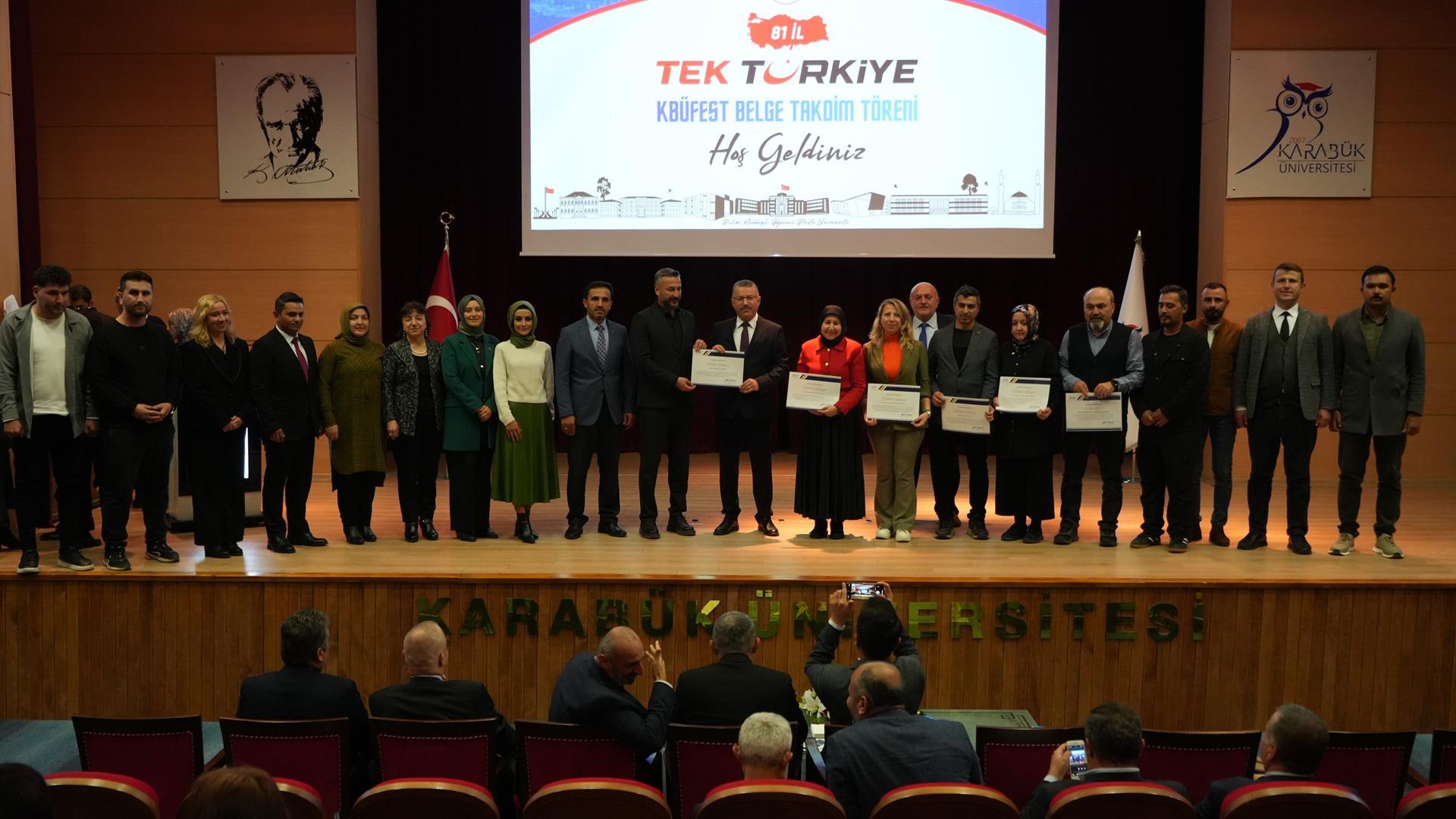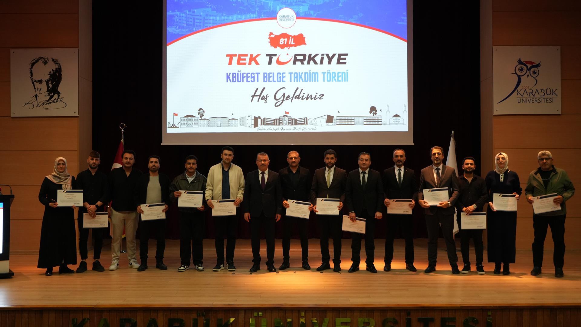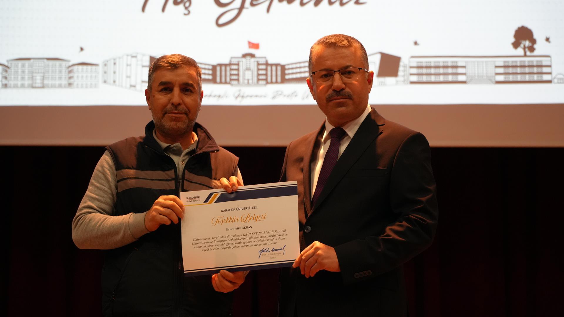 Karabük Üniversitesi merkez kampüsünde 20–21 Ekim tarihlerinde düzenlenen festivalde görev alan akademik – idari personel ve öğrencilere, destek veren kişilere ve kurum temsilcilerine, 15 Temmuz Şehitler Konferans Salonu’nda düzenlenen törenle teşekkür belgeleri takdim edildi.