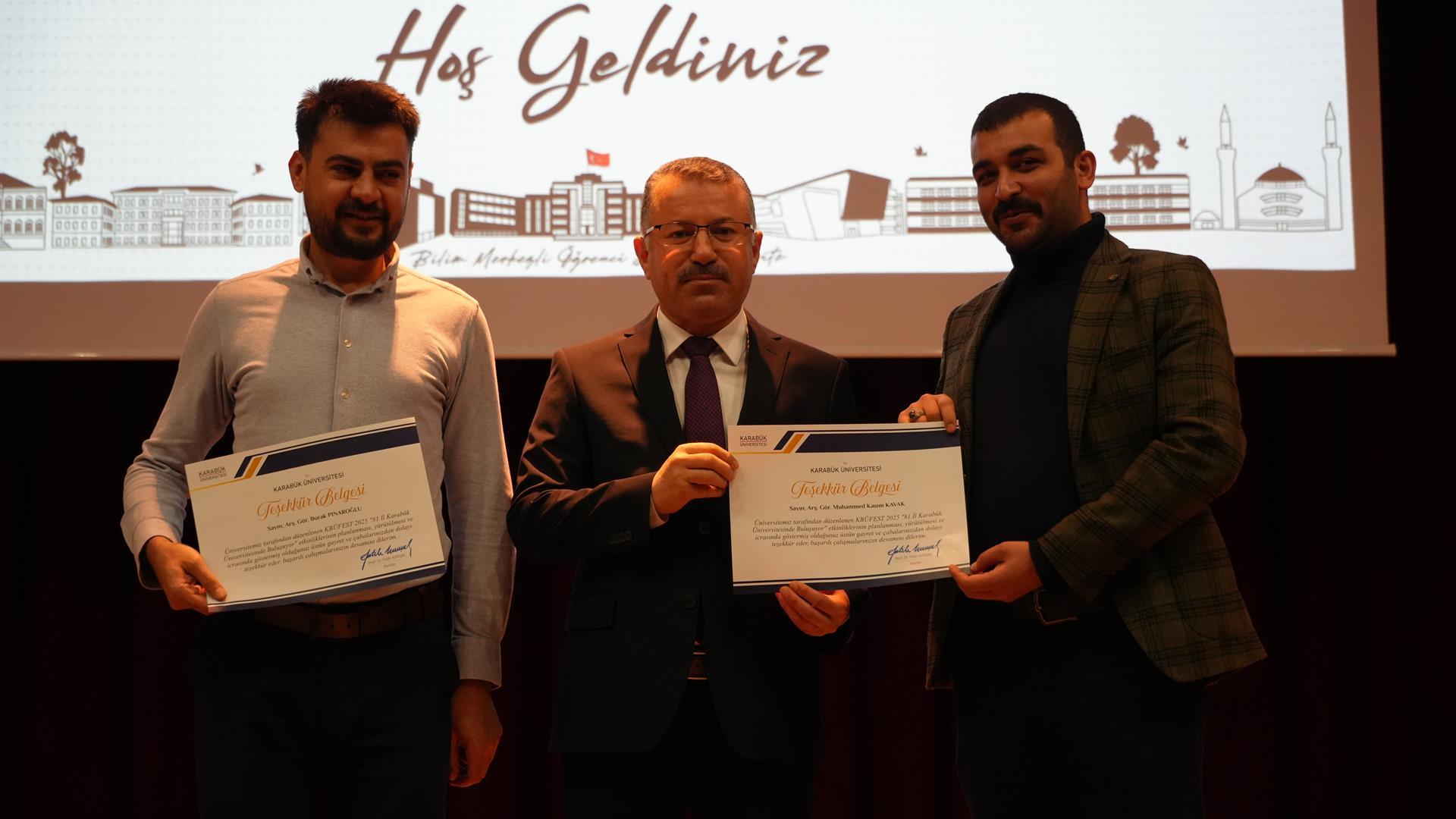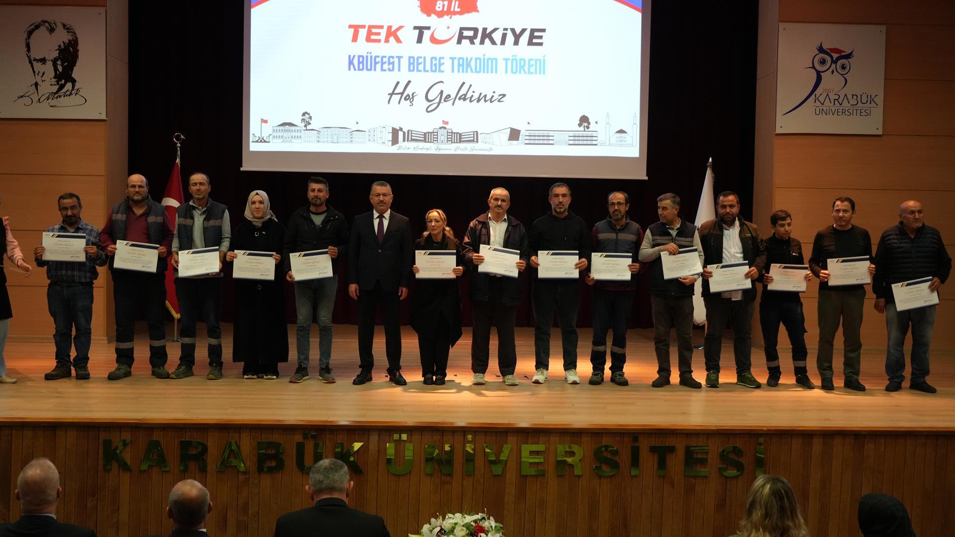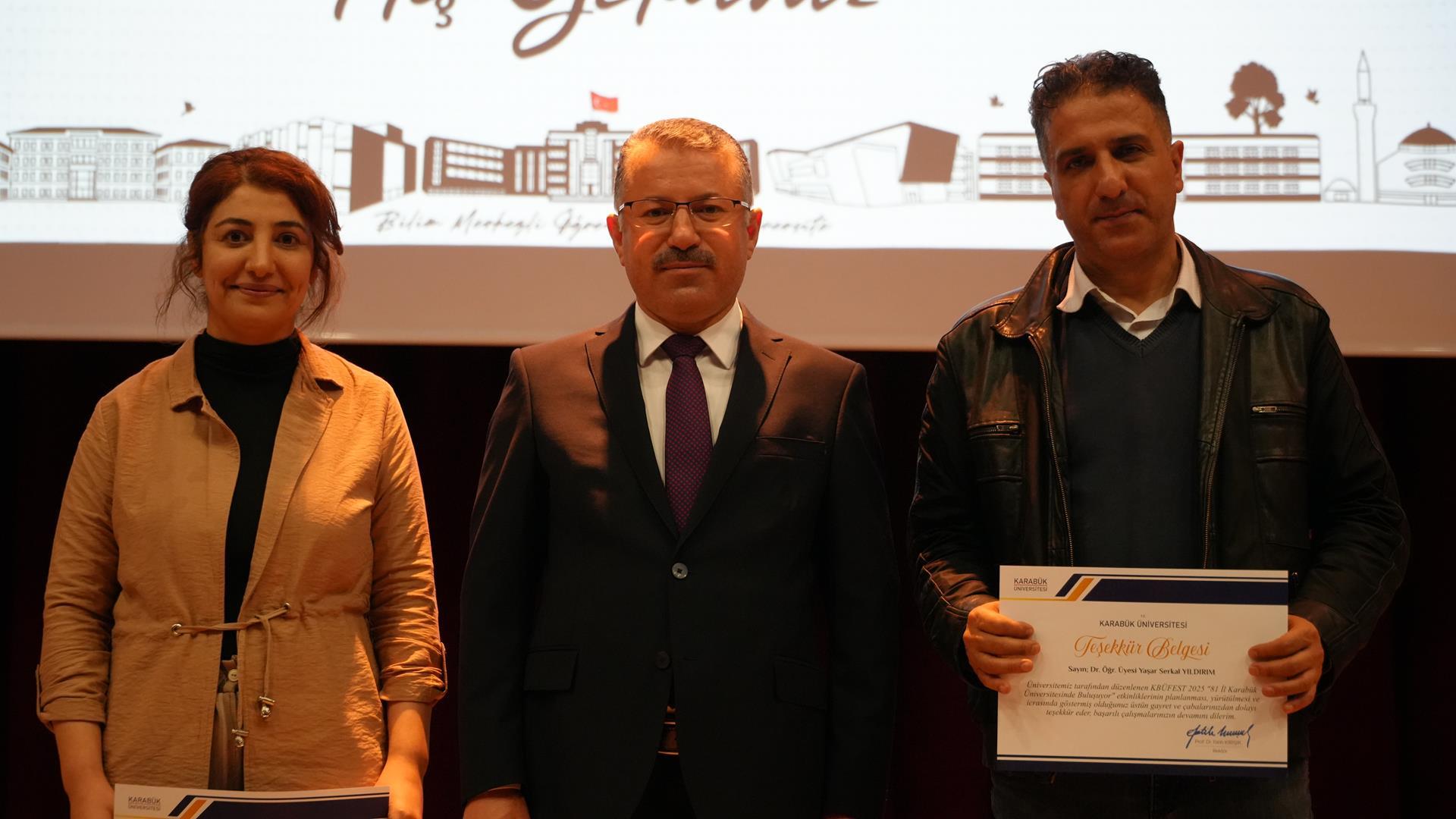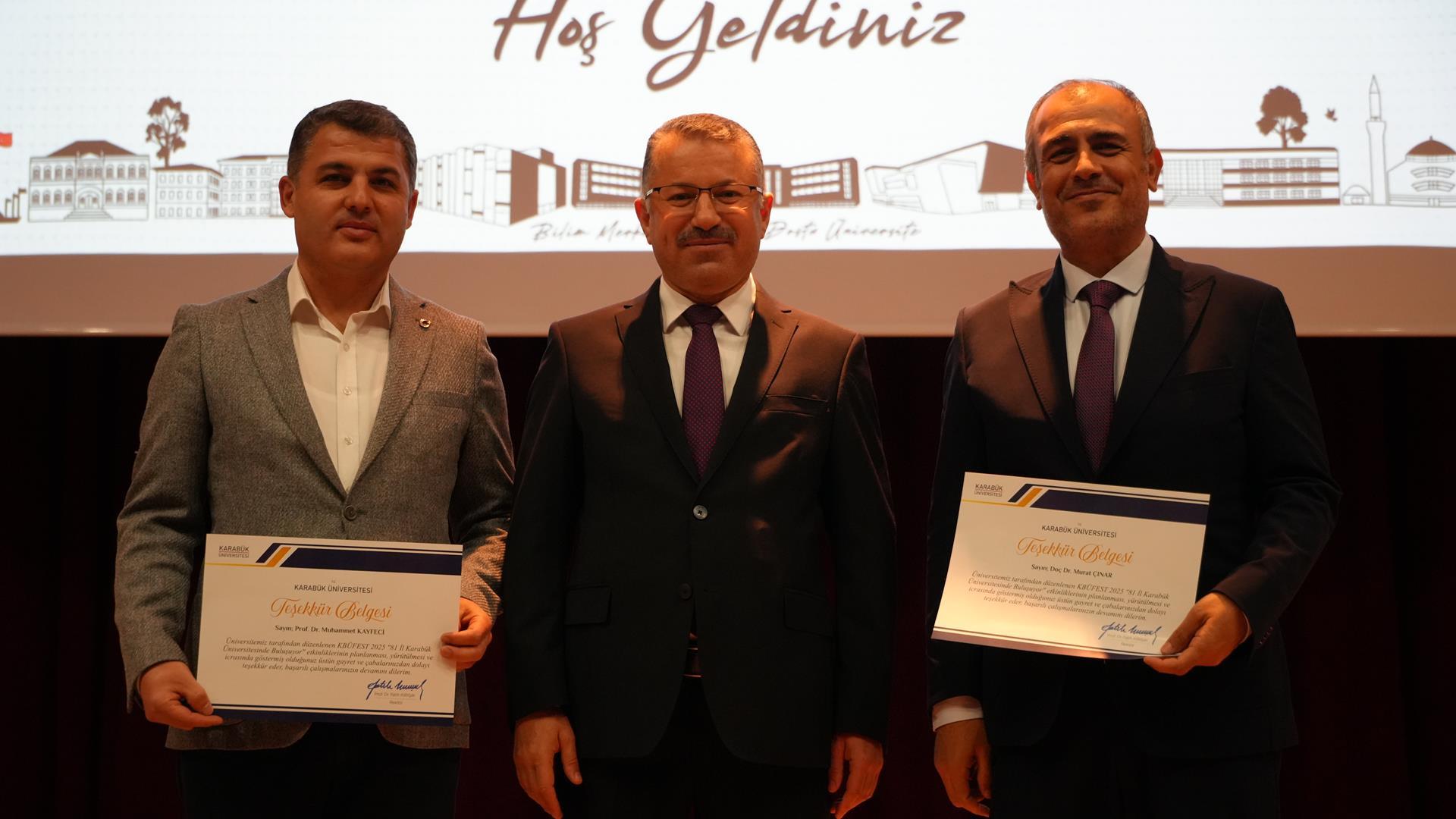 Karabük Üniversitesi merkez kampüsünde 20–21 Ekim tarihlerinde düzenlenen festivalde görev alan akademik – idari personel ve öğrencilere, destek veren kişilere ve kurum temsilcilerine, 15 Temmuz Şehitler Konferans Salonu’nda düzenlenen törenle teşekkür belgeleri takdim edildi.