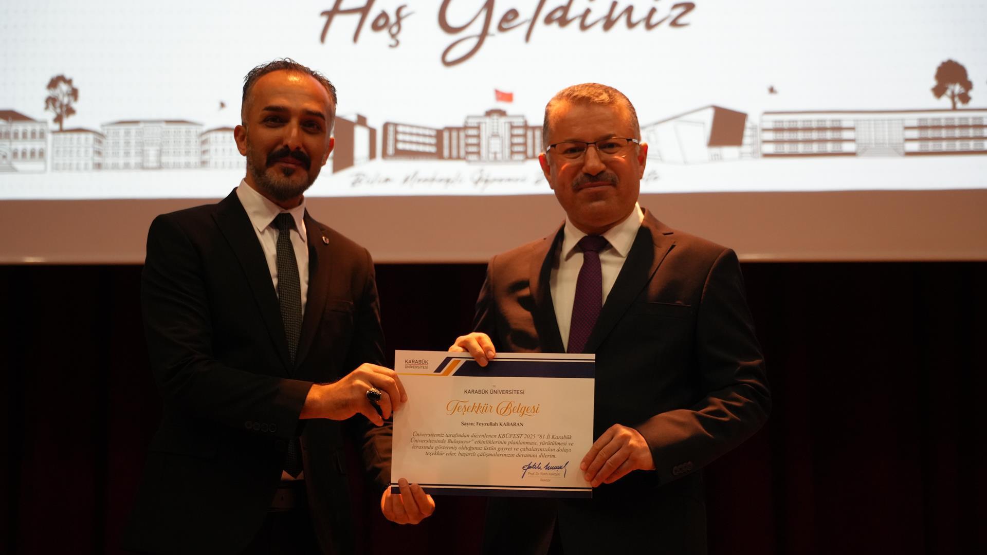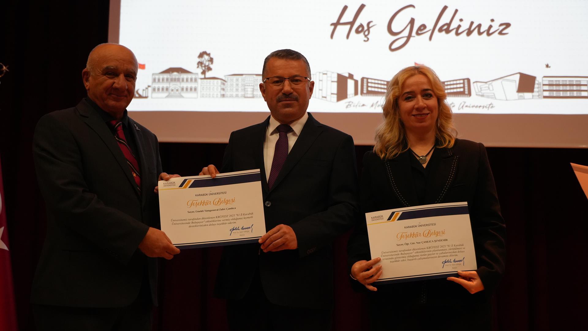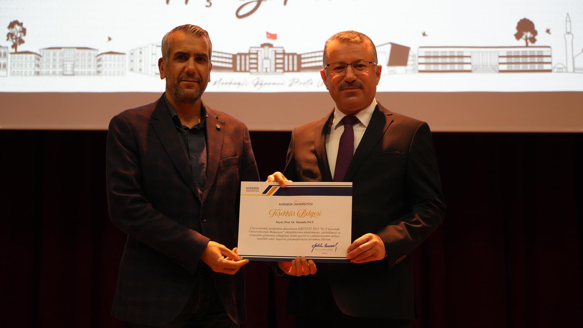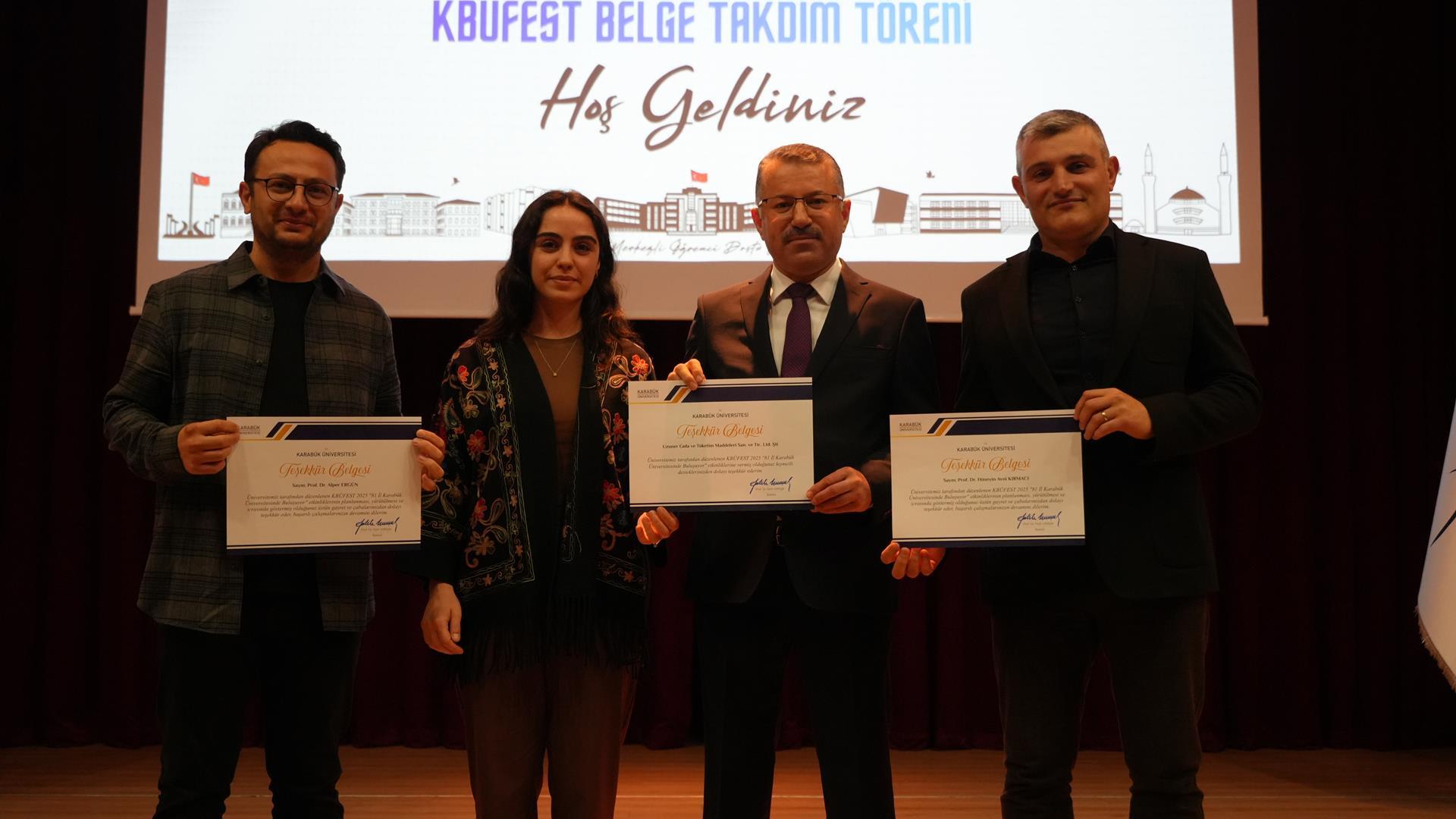 Karabük Üniversitesinin (KBÜ) kültürel marka etkinliği KBÜFEST 2025’in ardından, festivale katkı sunanlara Rektör Prof. Dr. Fatih Kırışık tarafından teşekkür belegesi takdim edildi.