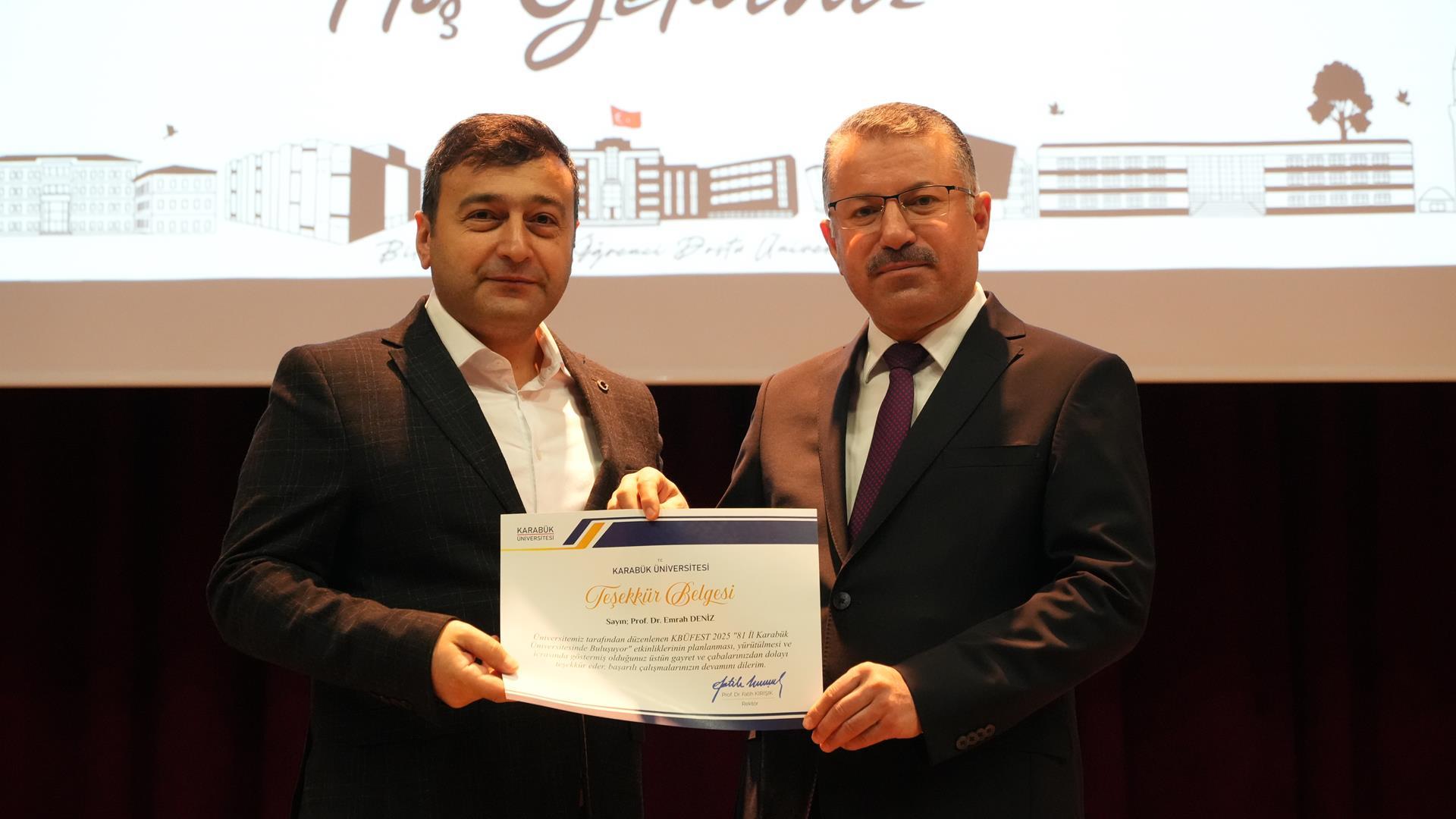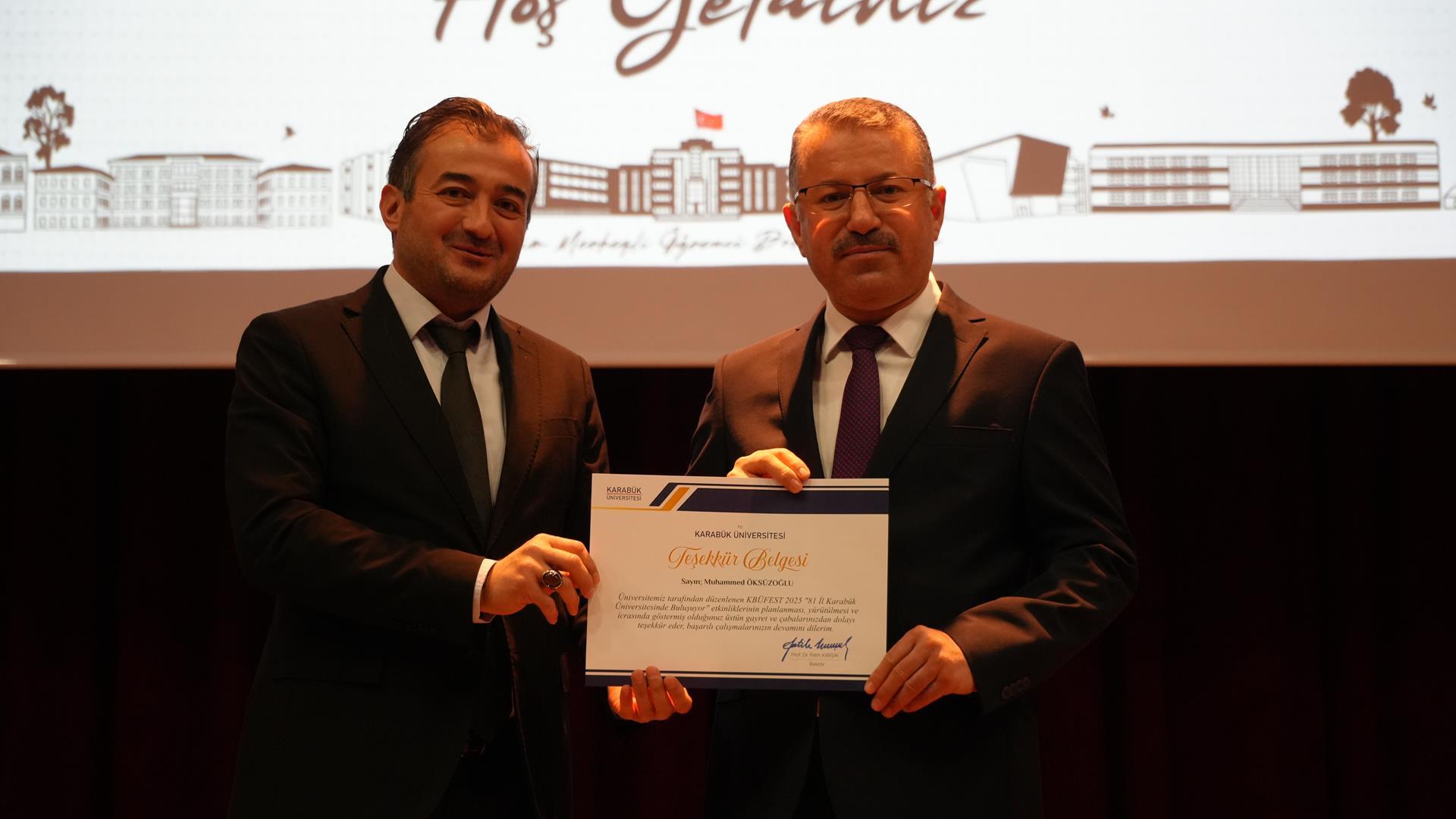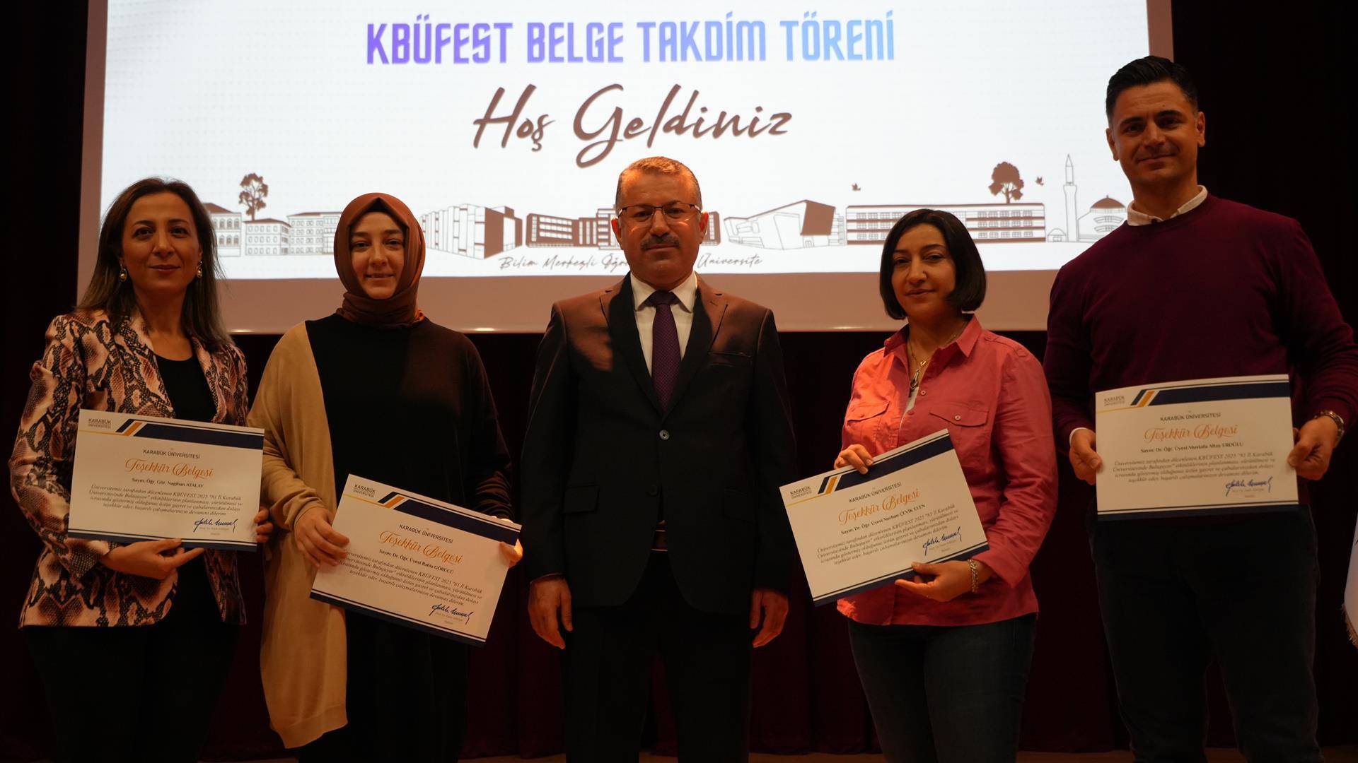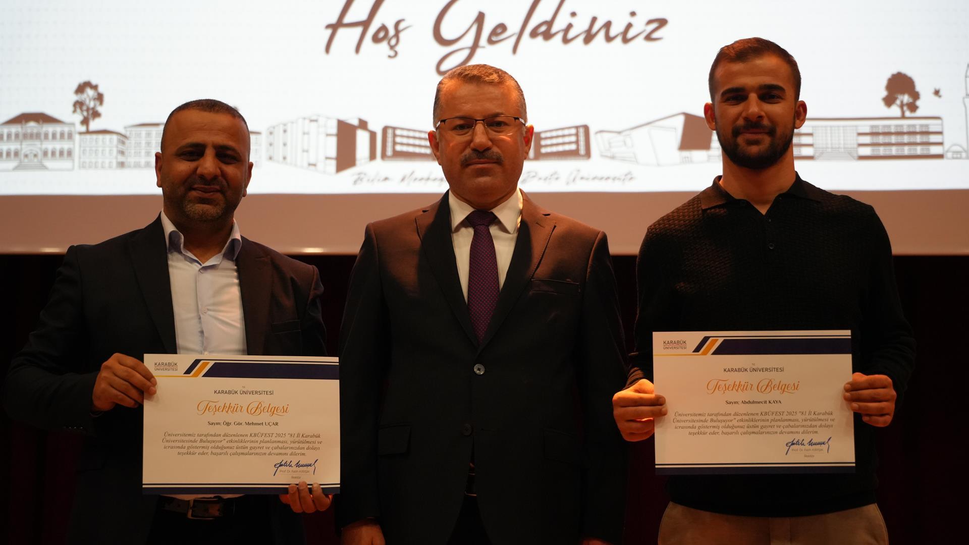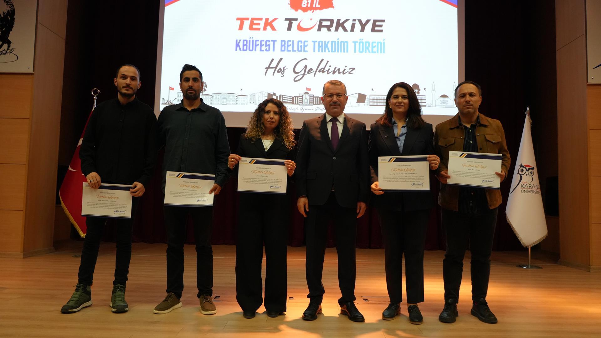 Karabük Üniversitesinin (KBÜ) kültürel marka etkinliği KBÜFEST 2025’in ardından, festivale katkı sunanlara Rektör Prof. Dr. Fatih Kırışık tarafından teşekkür belegesi takdim edildi.