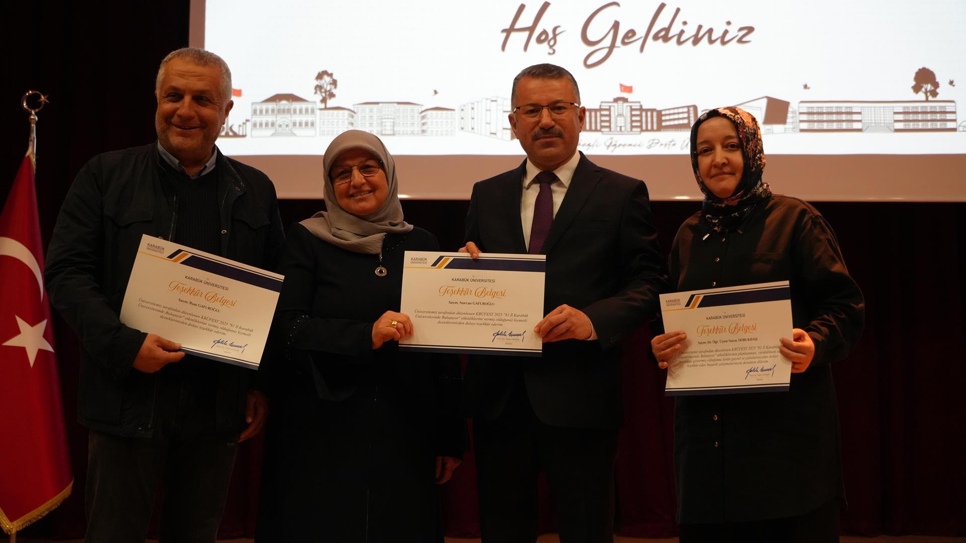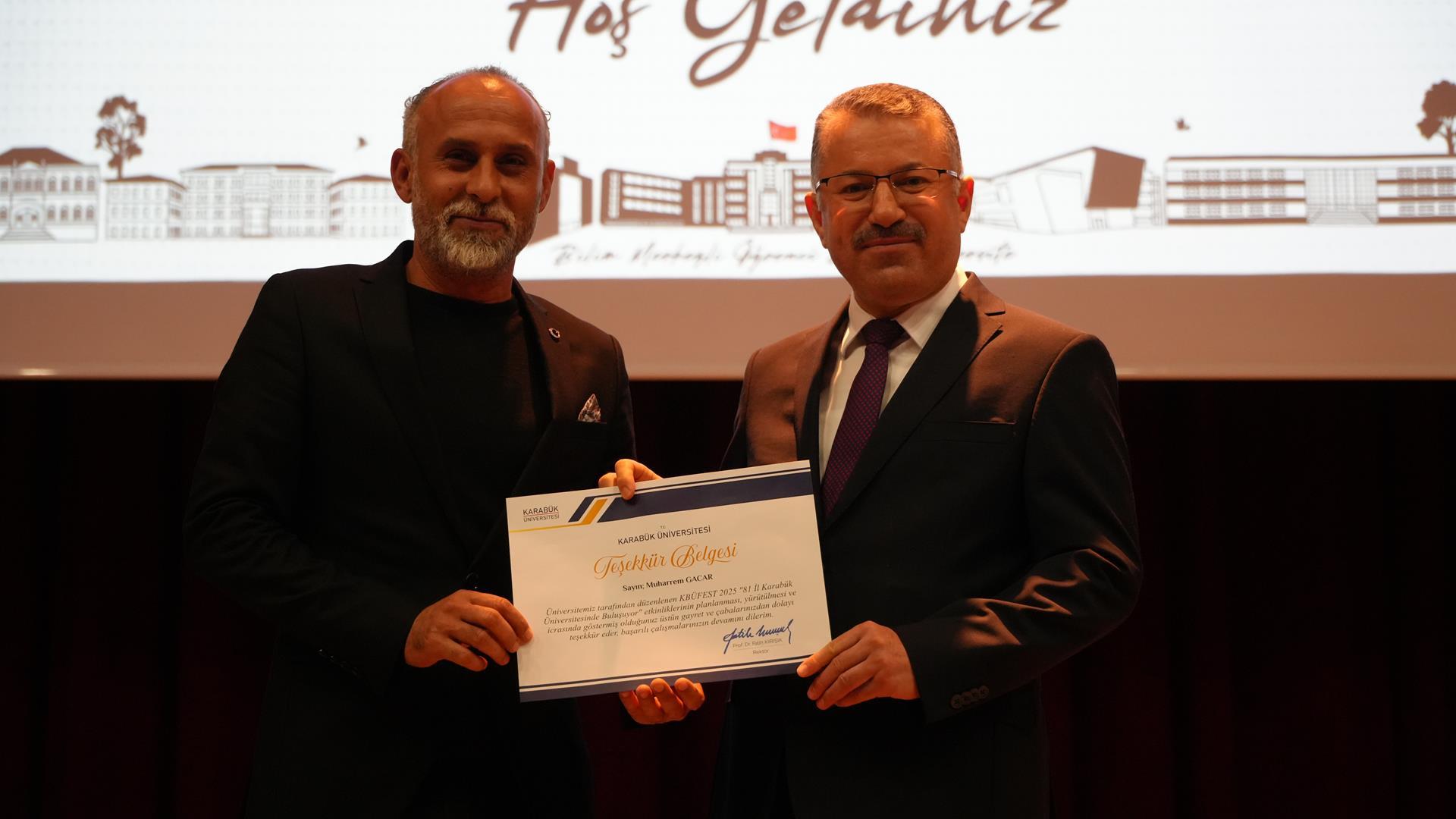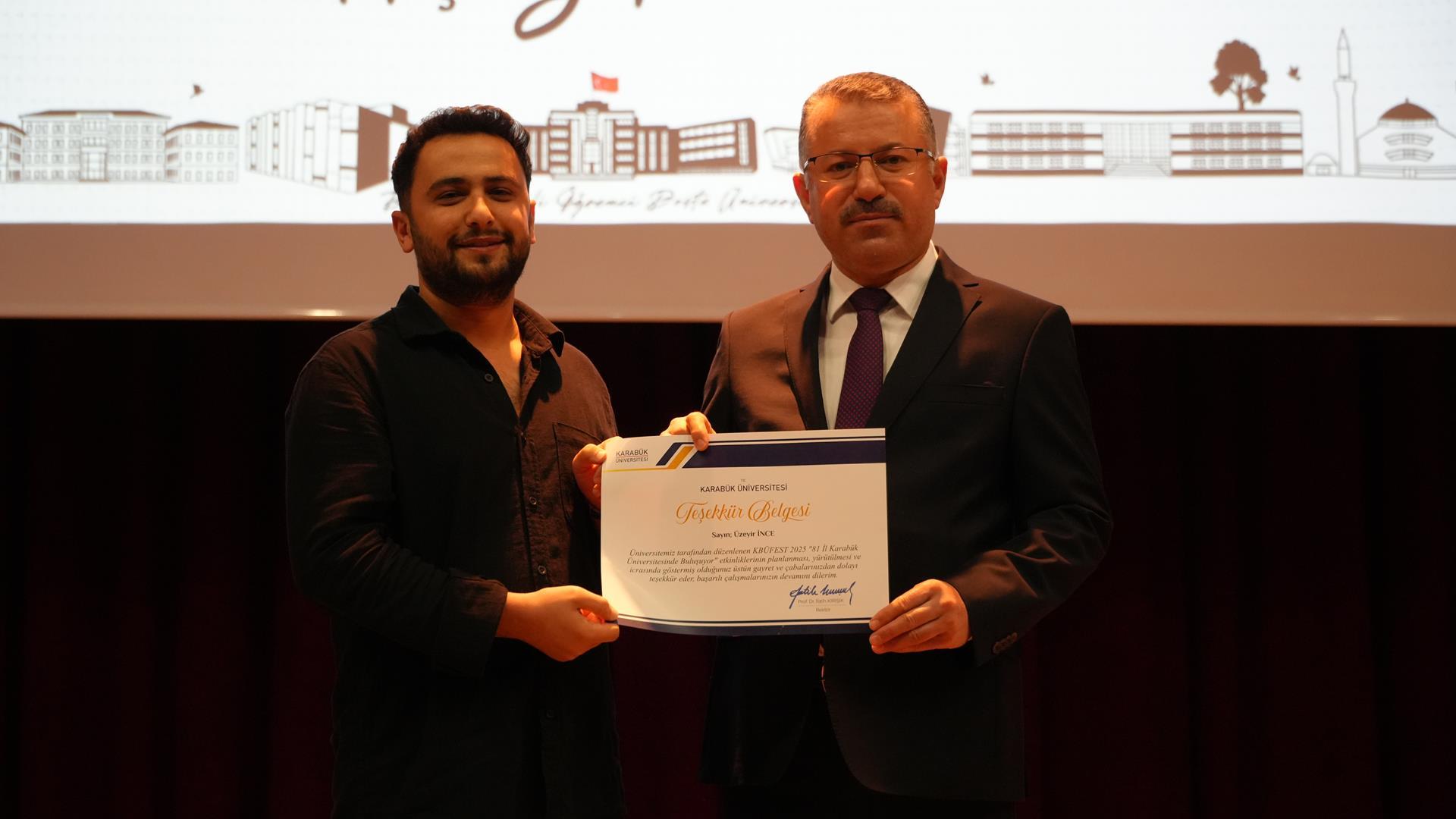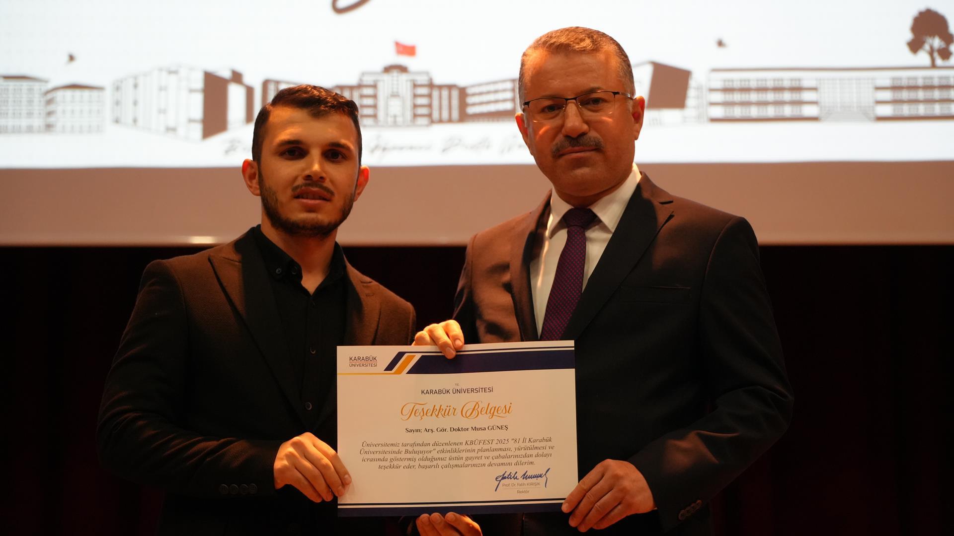 Karabük Üniversitesinin (KBÜ) kültürel marka etkinliği KBÜFEST 2025’in ardından, festivale katkı sunanlara Rektör Prof. Dr. Fatih Kırışık tarafından teşekkür belegesi takdim edildi.