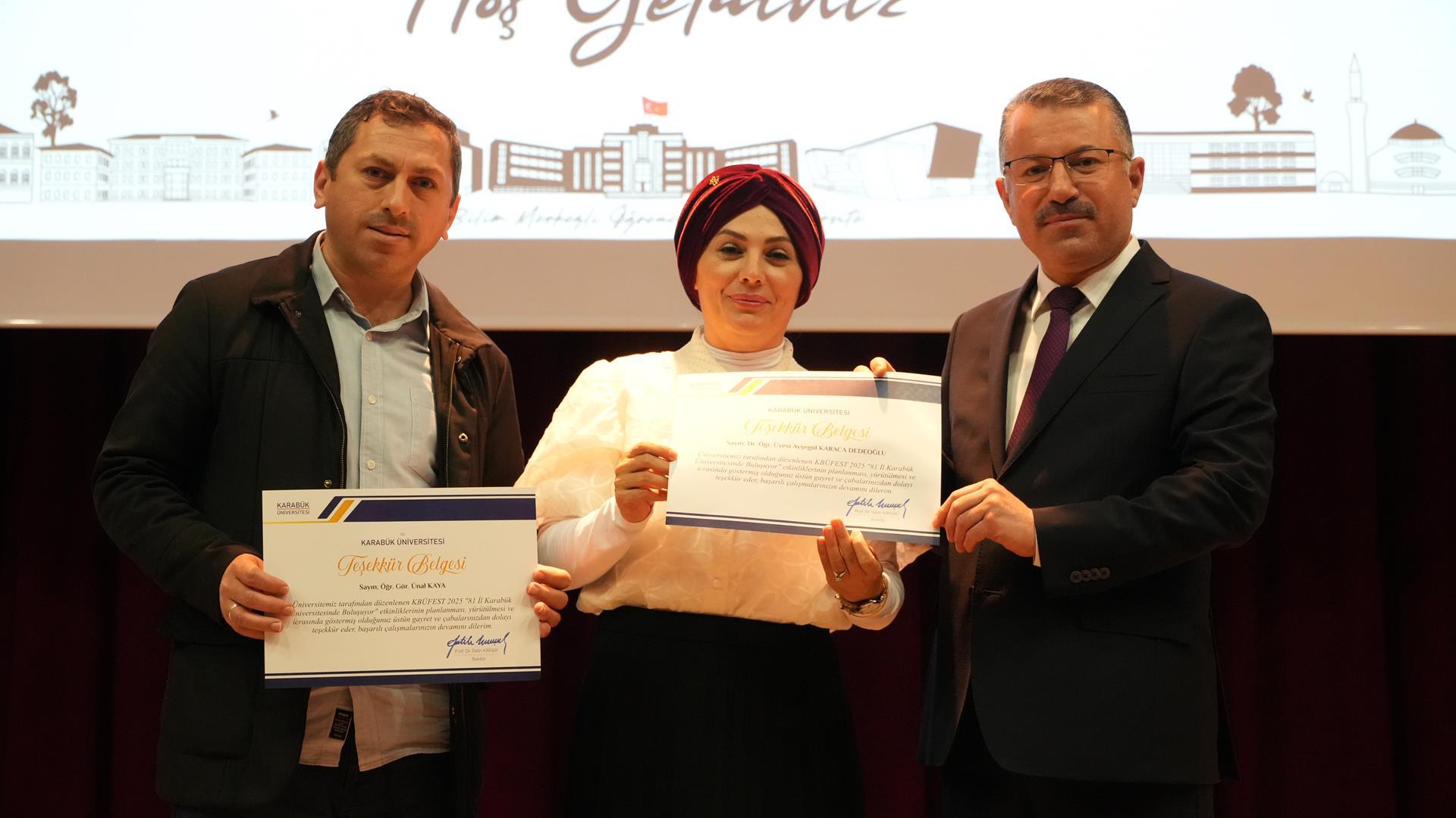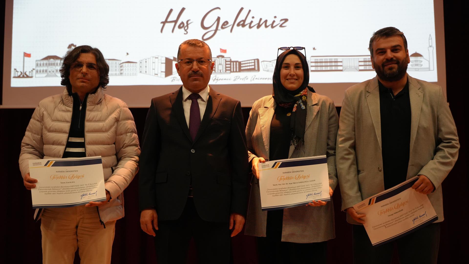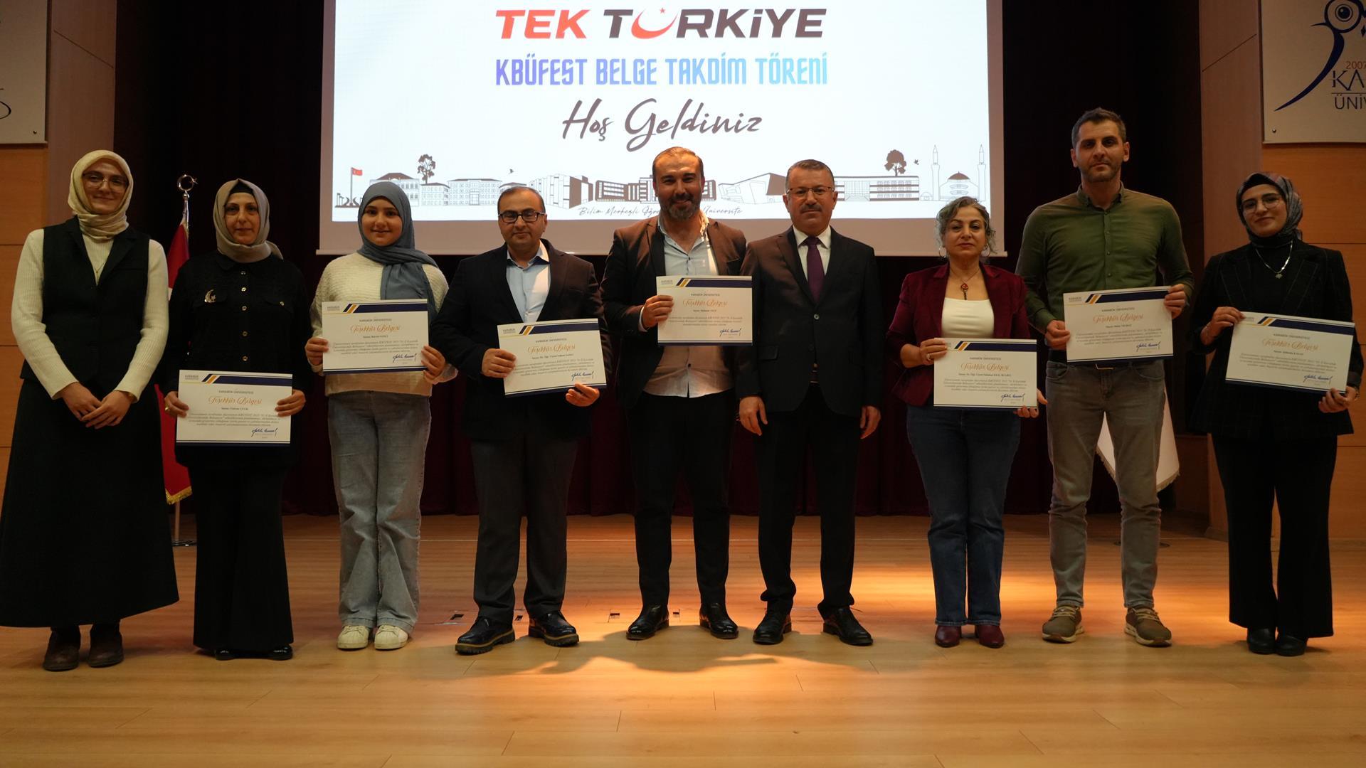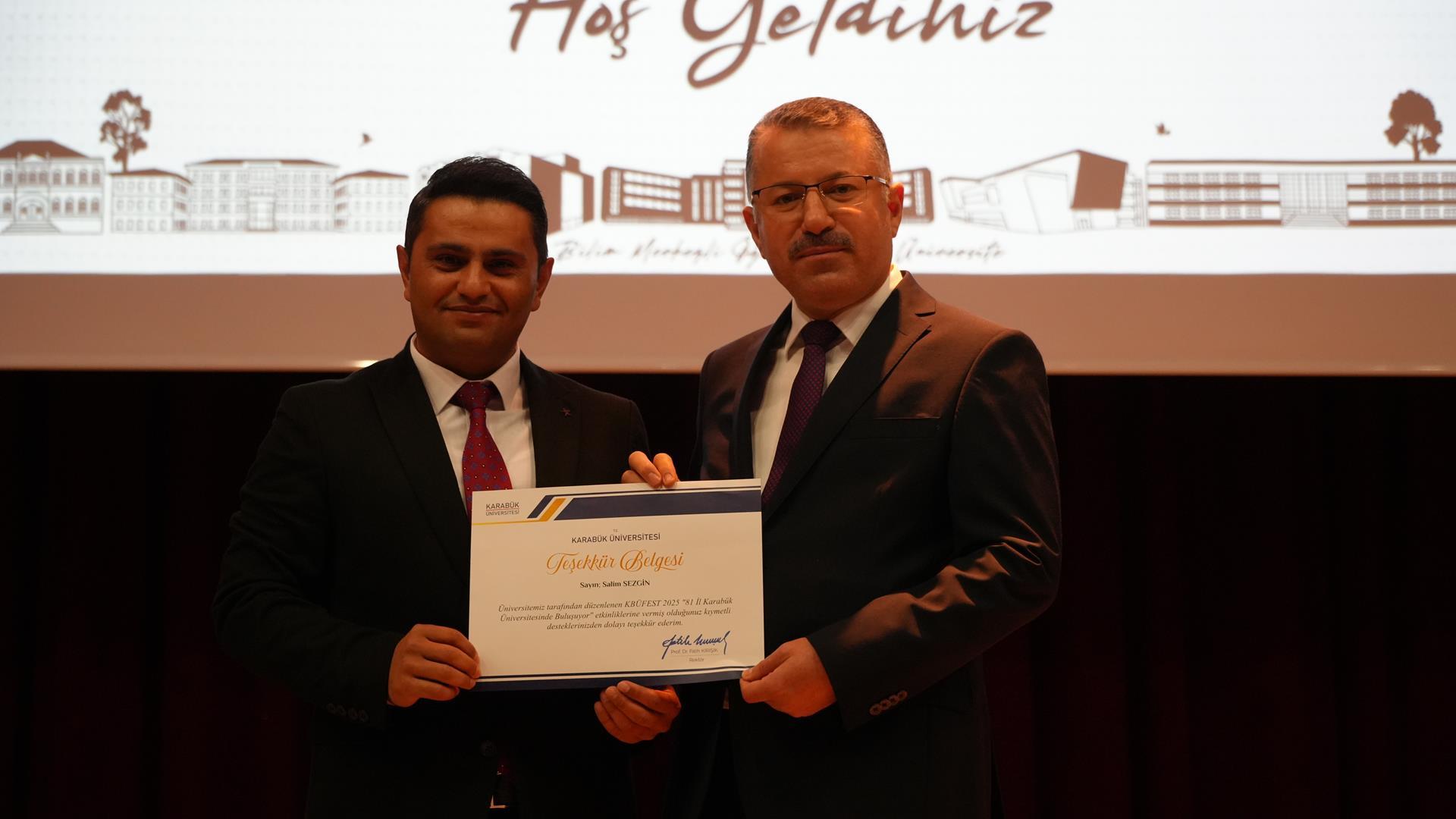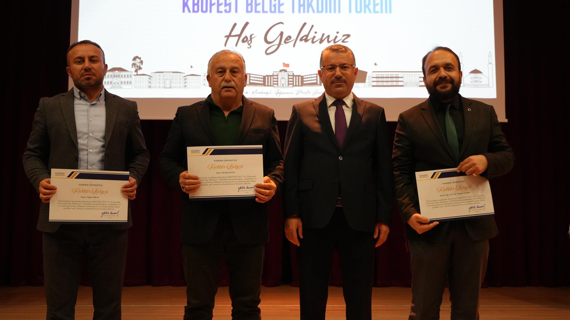 Karabük Üniversitesinin (KBÜ) kültürel marka etkinliği KBÜFEST 2025’in ardından, festivale katkı sunanlara Rektör Prof. Dr. Fatih Kırışık tarafından teşekkür belegesi takdim edildi.