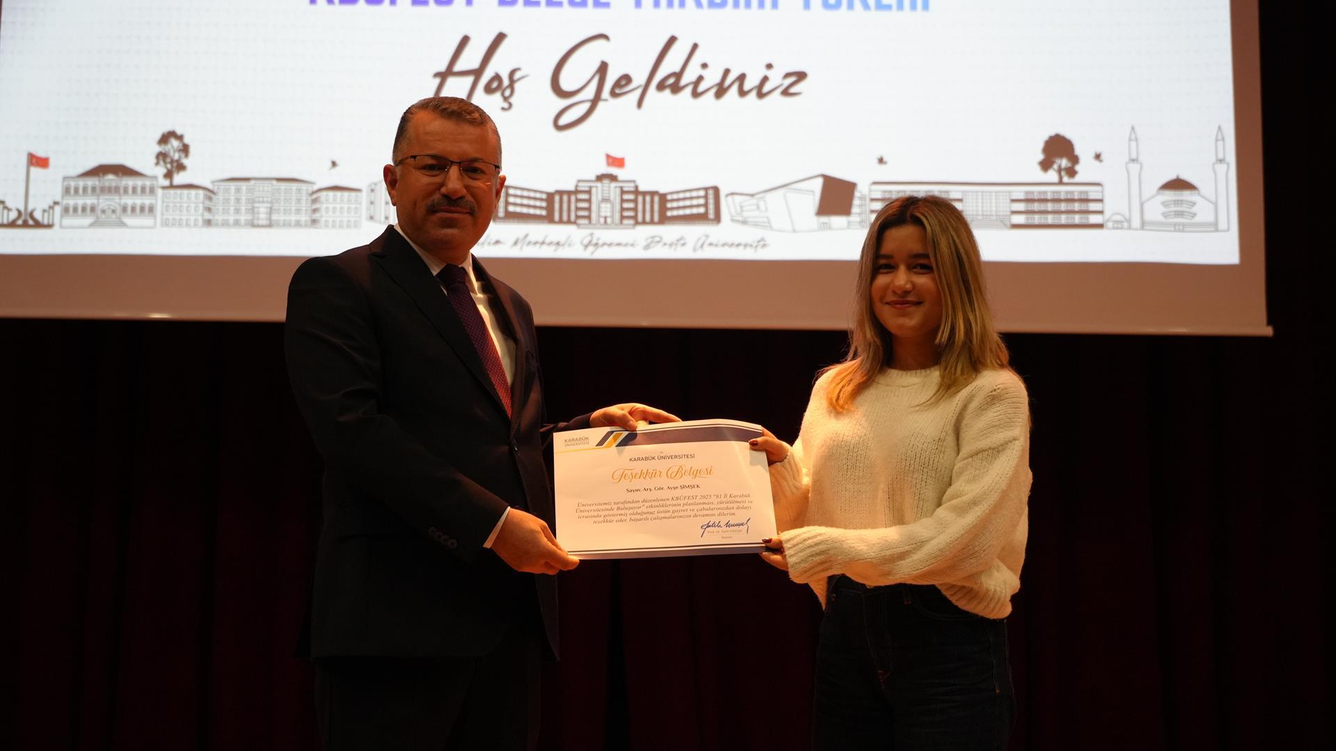 Karabük Üniversitesi Rektörü Prof. Dr. Fatih Kırışık tarafından, bu yıl ikincisi düzenlenen KBÜFEST İller Festivali sürecinde görev alan personel ile öğrencilere ve destek sunan paydaşlara teşekkür belgesi takdim edildi.