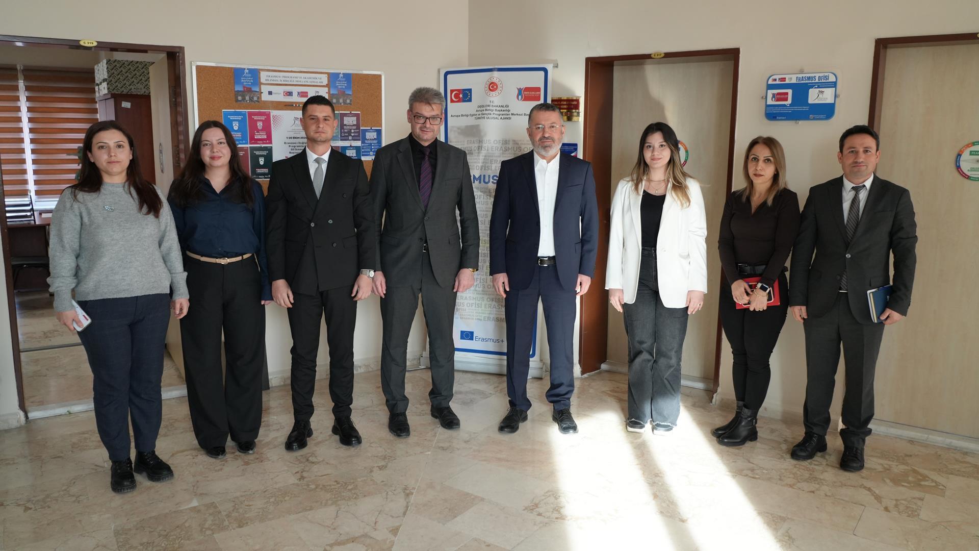 KBÜ Rektörü Prof. Dr. Fatih Kırışık, Uluslararası İlişkiler Koordinatörlüğünde gerçekleştirilen toplantıda Erasmus+ projeleri ve yeni uluslararası iş birliği hedeflerini masaya yatırdı.