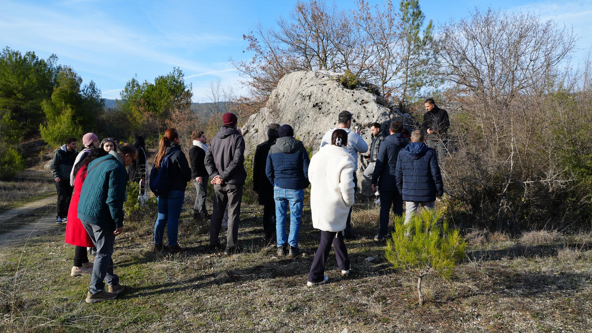 KBÜ Bilim İletişimi Ofisi tarafından düzenlenen ve akademik bilginin sahaya taşındığı programda katılımcılar, Üçbölük Köyü–Hacılarobası Kaya Mezarları güzergâhında yer alan Soğanlı Çayı Vadisi’ndeki arkeolojik alanları ziyaret ederek bölgenin tarihsel ve kültürel mirasını yerinde görme imkânı buldu.