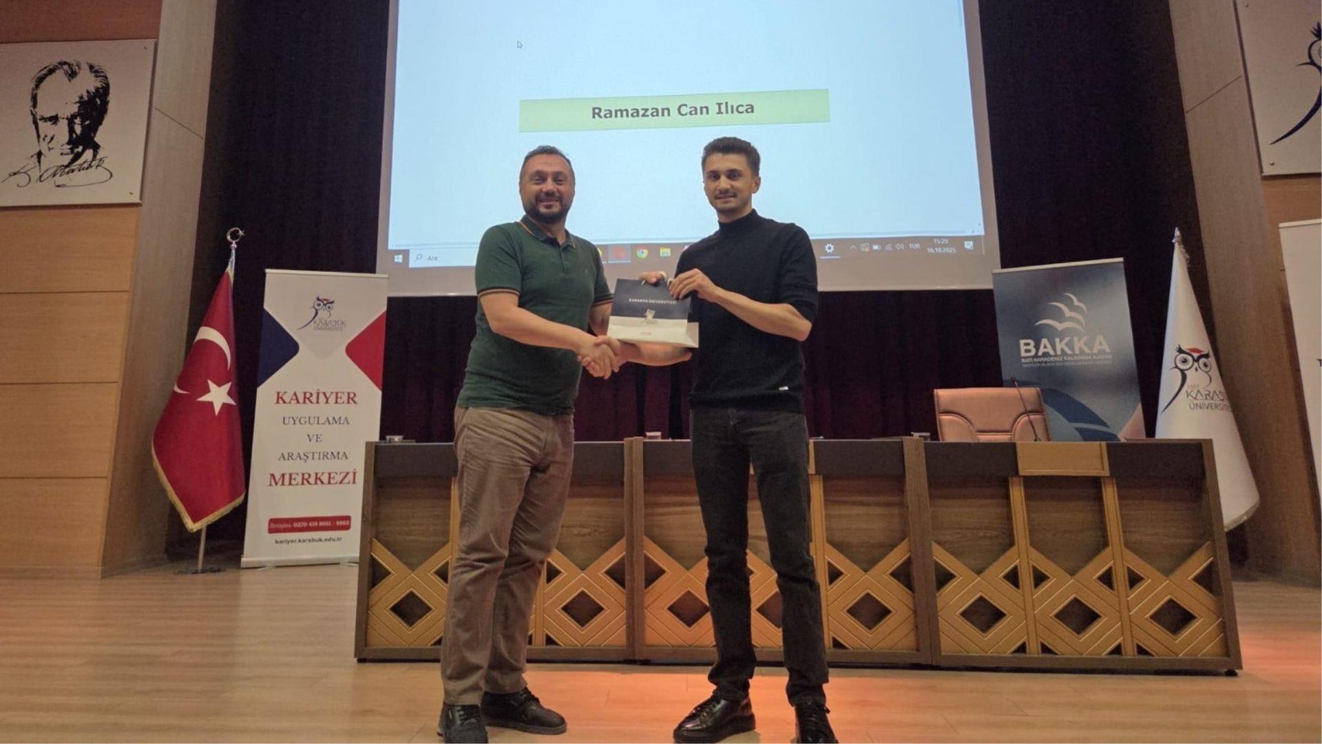 Etkinlik sonunda Rektör Yardımcısı Prof. Dr. İsmail Rakıp Karaş, Sinan Uysal’a teşekkür belgesi takdim etti. Ayrıca program sonunda Kariyer Merkezi tarafından gerçekleştirilen çekilişle üç öğrenciye sürpriz hediyeler verildi.