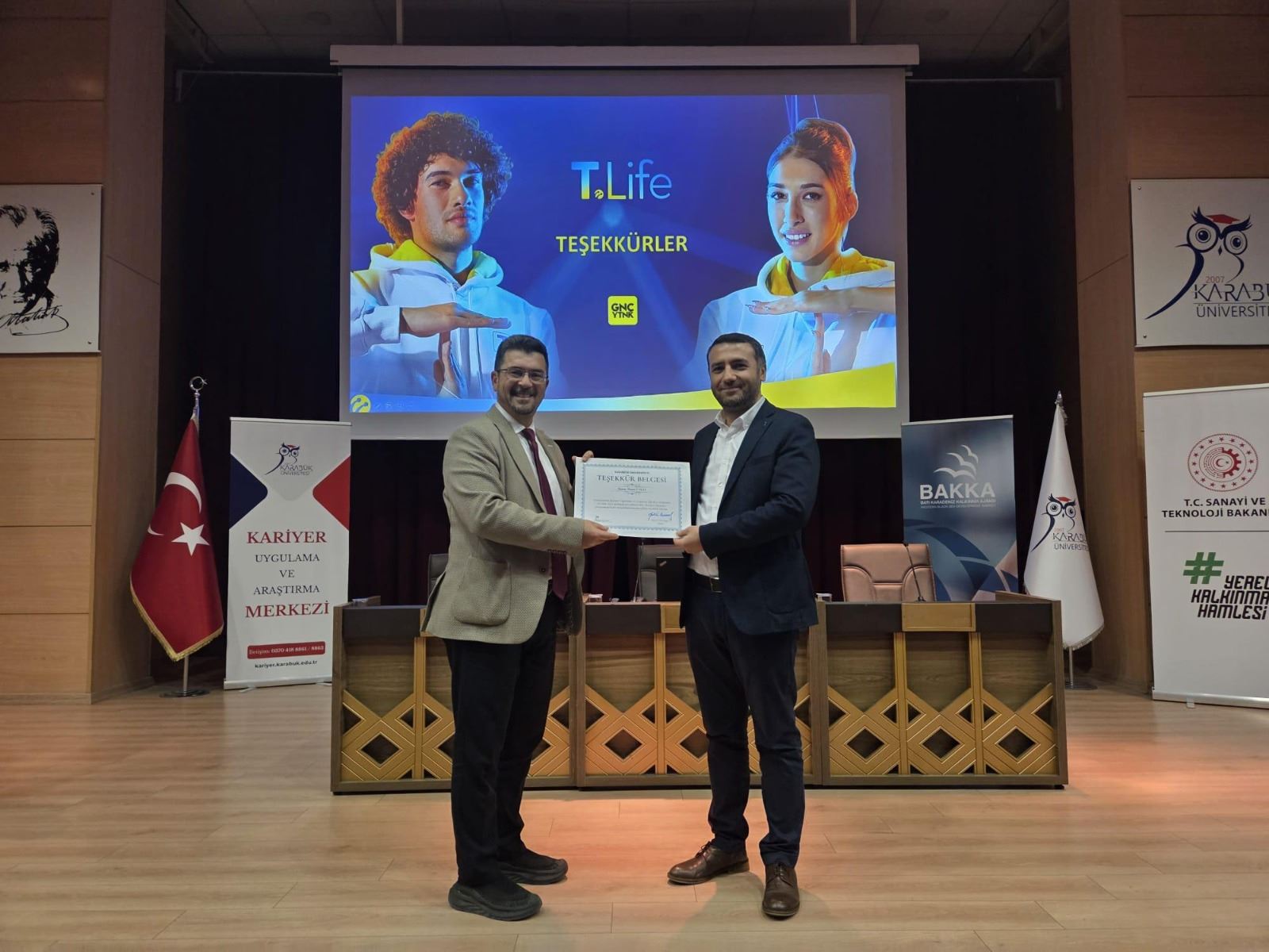 Karabük Üniversitesi (KBÜ) Kariyer Uygulama ve Araştırma Merkezi ile Batı Karadeniz Kalkınma Ajansı (BAKKA) iş birliğinde düzenlenen “Kariyer Söyleşileri” programı kapsamında, Turkcell Çalışan Deneyimi Kıdemli Müdürü Sinan Uysal, KBÜ öğrencileriyle bir araya geldi.