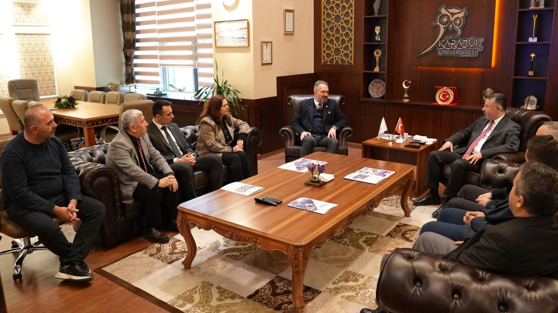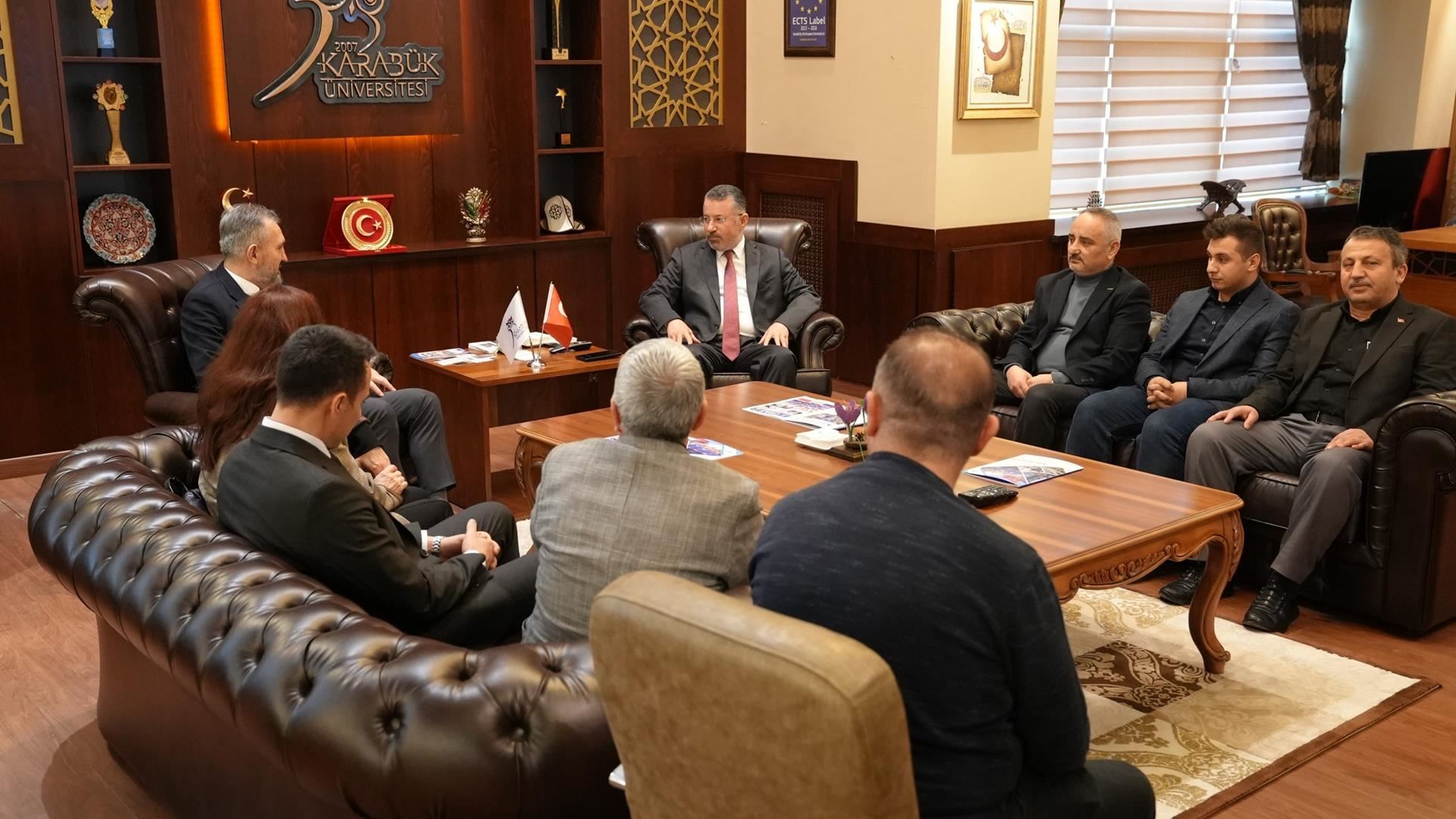 Türkiye Kamu-Sen ve TÜRKAV Karabük İl Temsilciliği ile bağlı sendikaların temsilcileri, Karabük Üniversitesi Rektörü Prof. Dr. Fatih Kırışık’ı makamında ziyaret etti.