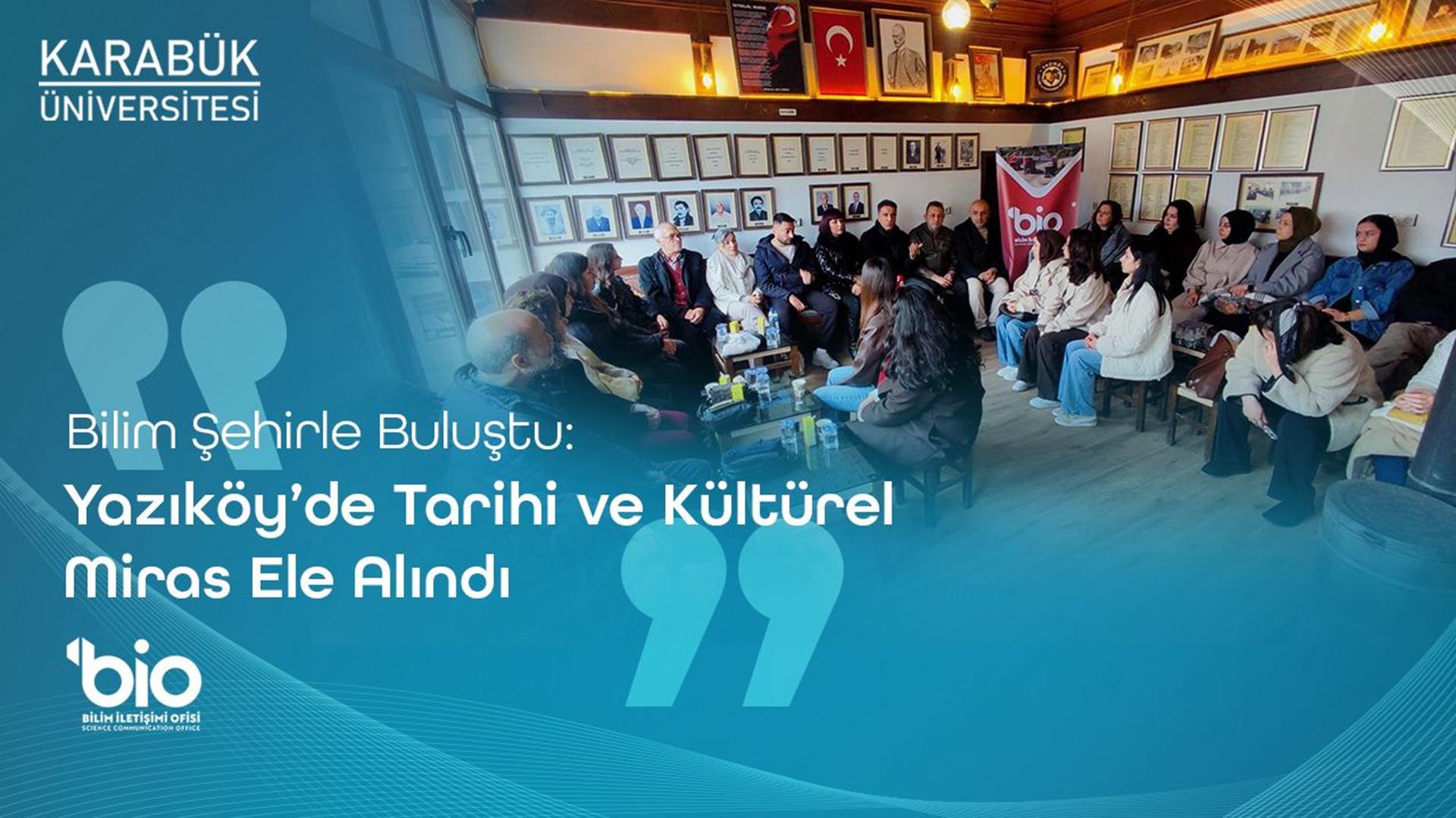 Karabük Üniversitesi (KBÜ) Bilim İletişimi Ofisinin “Bilim Kafe” etkinlikleri çerçevesinde; Yazıköy Muhtarlığı, Yazıköy Kültür ve Dayanışma Derneği, KBÜ Sesli Düşünme Kulübü ile KBÜ Kültür Sanat Çalışma Takımı iş birliğinde düzenlenen “Bilim Şehirle Buluşuyor: Tarihi ve Kültürel Mirasın Korunması – Yazıköy Söyleşisi”, Yazıköy Kültür Merkezi’nde gerçekleştirildi.