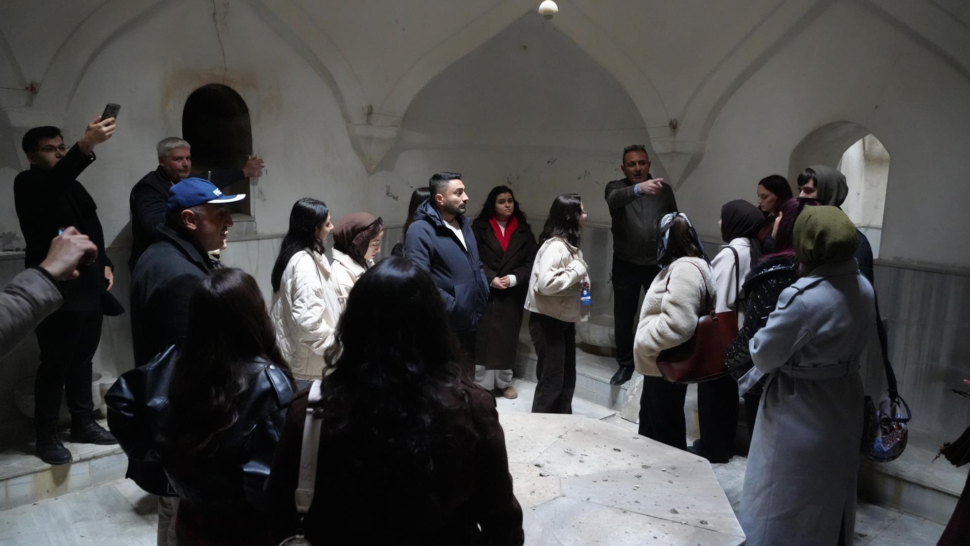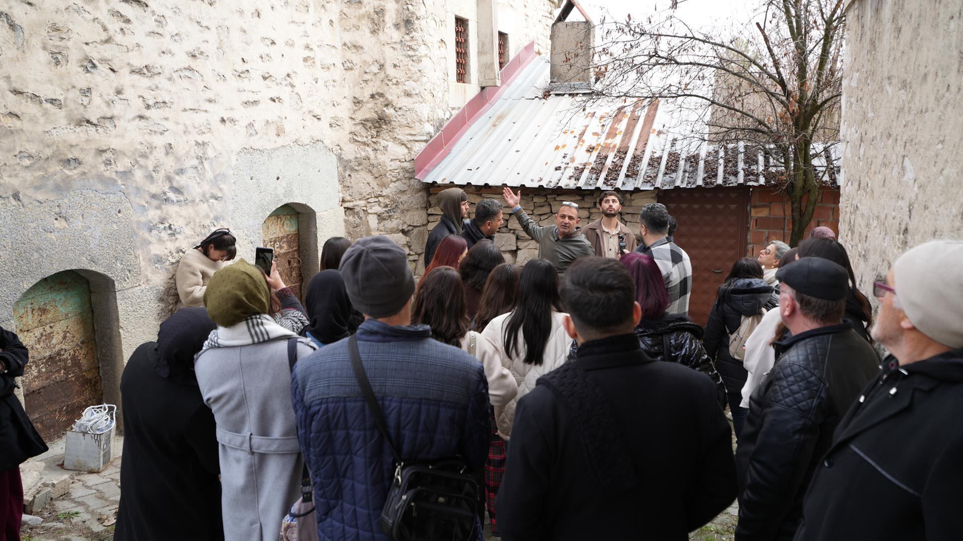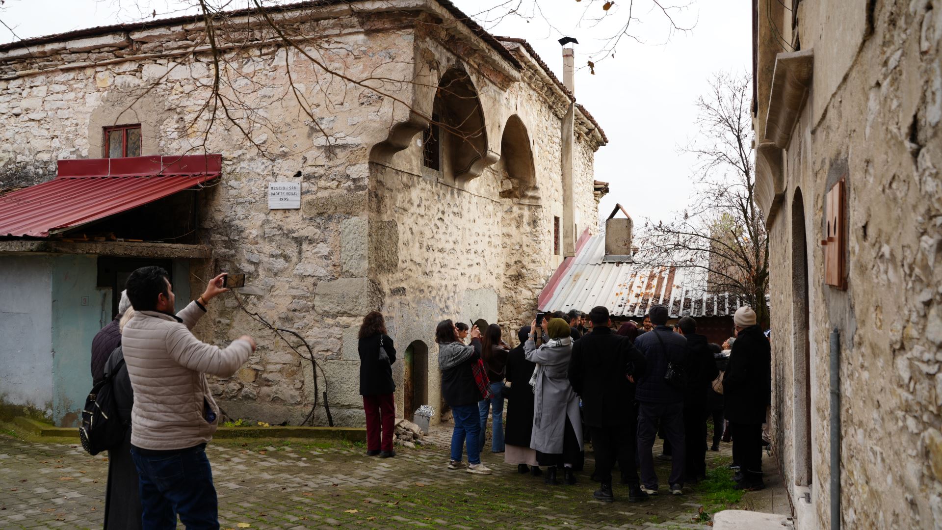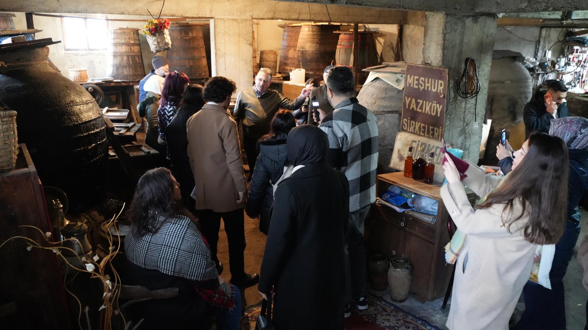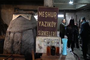 Söyleşinin ardından düzenlenen saha gezisinde, yaklaşık 300-400 yıllık üzüm sirkesi fıçıları, Osmanlı ve Bizans dönemlerine ait organik fıçılar, keşkek fırını, eski kilise, sinema salonu ve hamam gezilerek katılımcılara yerinde bilgi verildi.