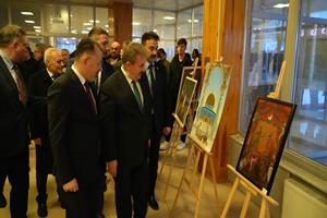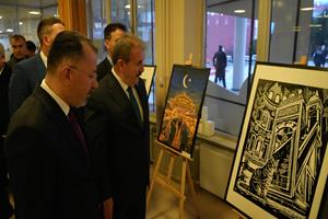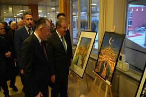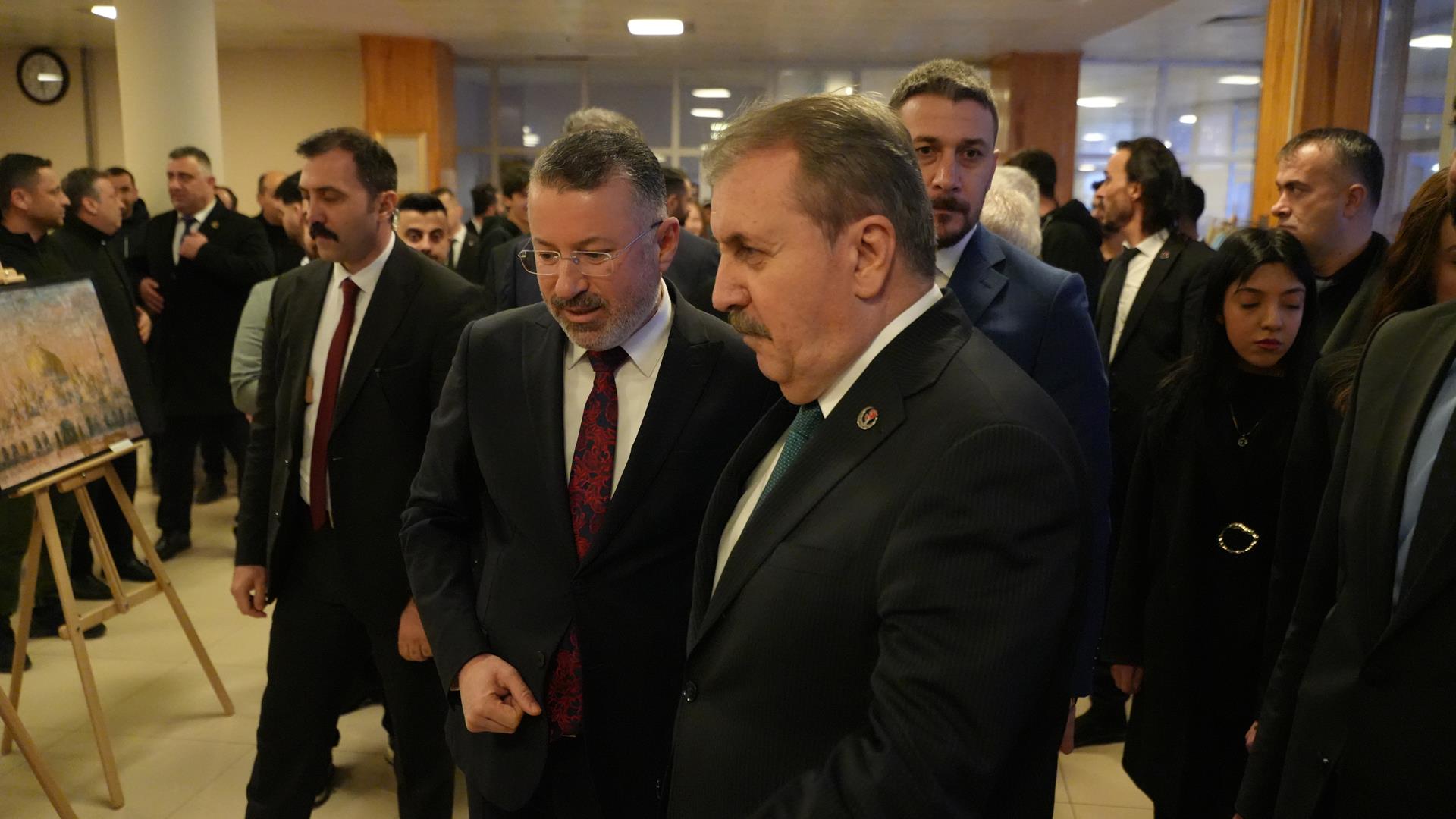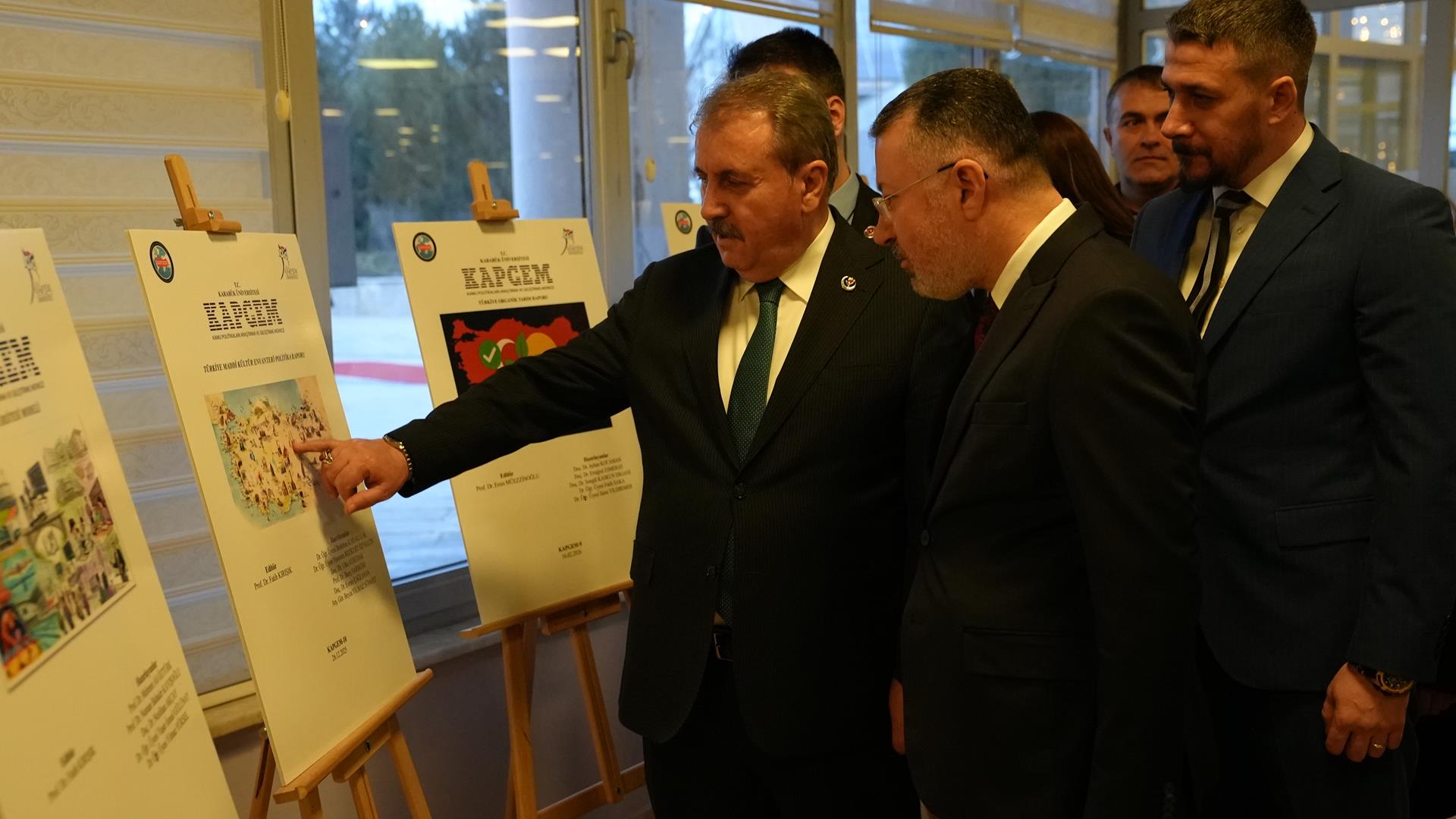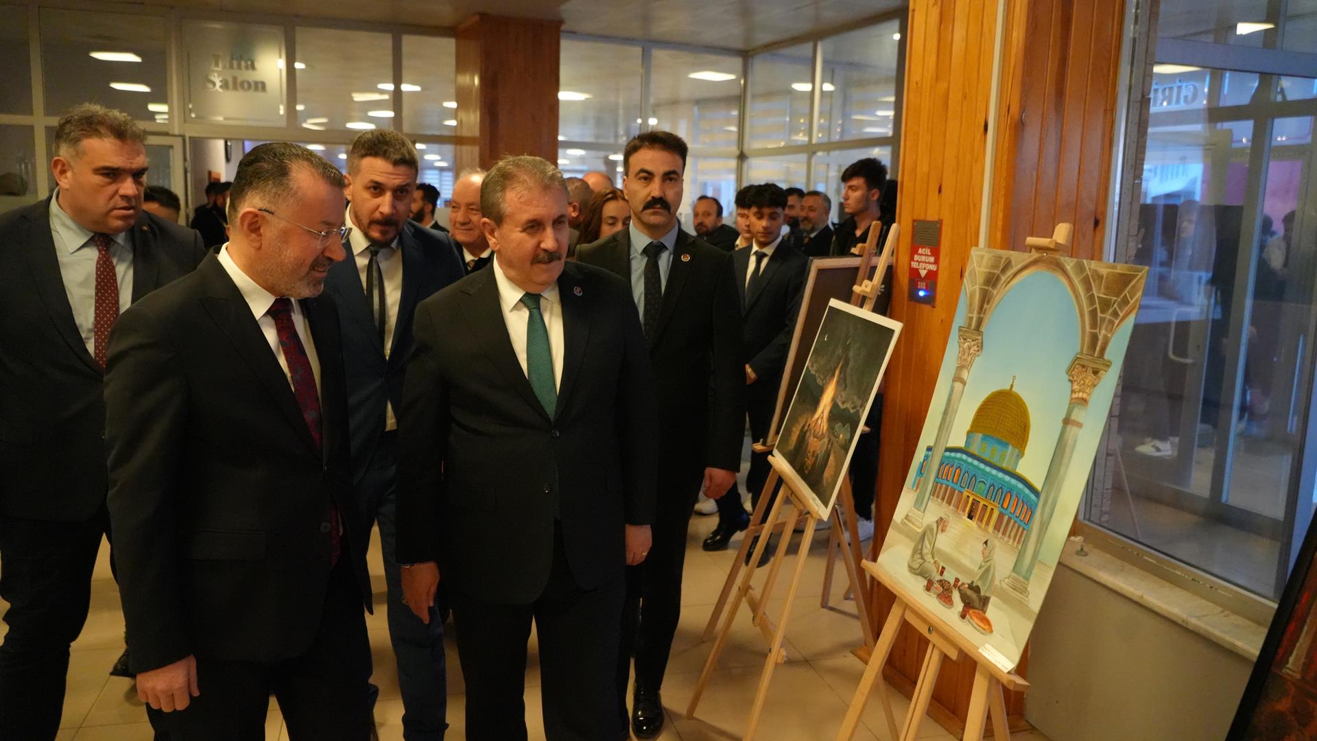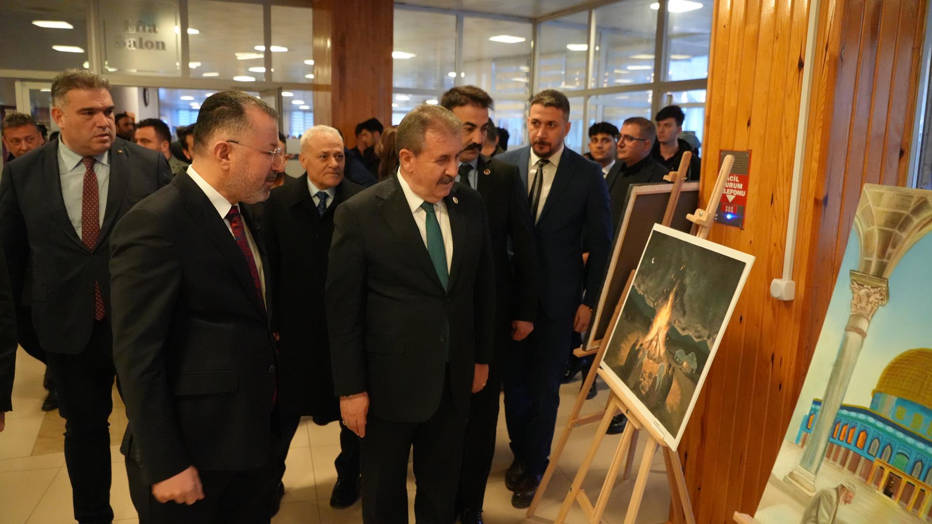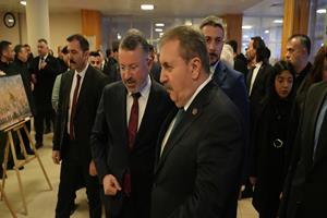 Karabük Üniversitesi Sosyal Yaşam Merkezinde düzenlenen program öncesinde Büyük Birlik Partisi Genel Başkanı Mustafa Destici ve Karabük Üniversitesi Rektörü Prof. Dr. Fatih Kırışık, Safranbolu Fethi Toker Güzel Sanatlar ve Tasarım Fakültesi Resim Bölümü öğretim üyesi Doç. Dr. Eda Öz Çelikbaş tarafından düzenlenen “Ramazan ve Ramazaniyeler: Dünyadan Ramazanlar” karma sergisini ve Karabük Üniversitesi Kamu Politikaları Araştırma ve Geliştirme Merkezinin hazıladığı 13 politika raporunun yer aldığı sergiyi gezdi.