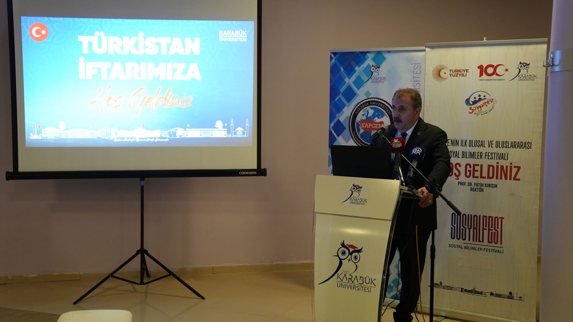 Karabük Üniversitesi tarafından Ramazan ayının manevi atmosferini paylaşmak amacıyla “Kampüste Ramazan Etkinlikleri” kapsamında düzenlenen “Türkistan İftarı” Büyük Birlik Partisi Genel Başkanı Mustafa Destici’nin katılımıyla gerçekleştirildi.