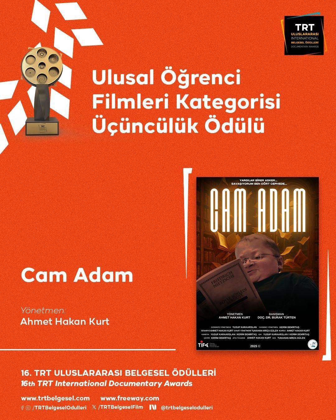 Karabük Üniversitesi (KBÜ) Safranbolu Türker İnanoğlu İletişim Fakültesi öğrencilerinin hazırladığı “Cam Adam” adlı belgesel film, 16. TRT Uluslararası Belgesel Ödülleri’nde Öğrenci Filmleri Kategorisinde Üçüncülük Ödülü’ne layık görüldü.