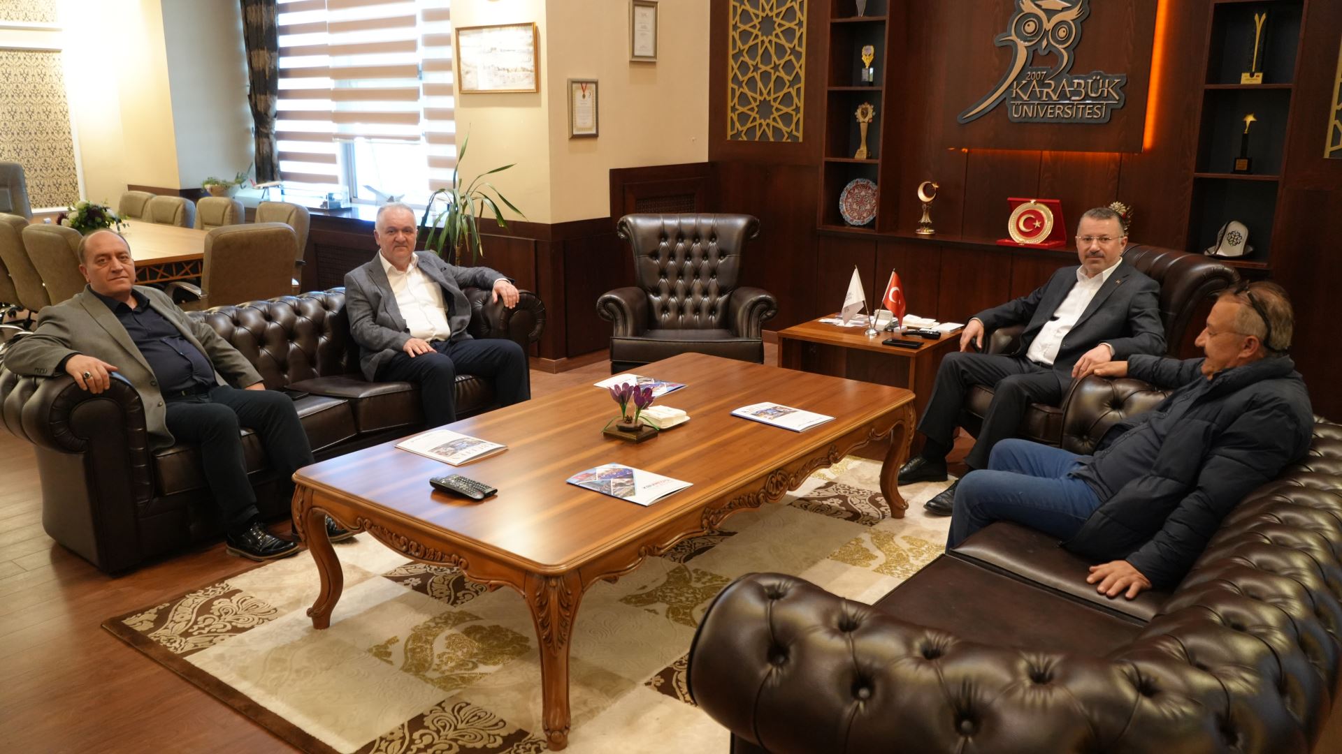 Karabük’te faaliyet gösteren Karabük Birlik Medya yöneticileri Sedat Karaoğlu, İhsan Ersözlü ve Zeki Akca, Karabük Üniversitesi Rektörü Prof. Dr. Fatih Kırışık’ı makamında ziyaret etti.