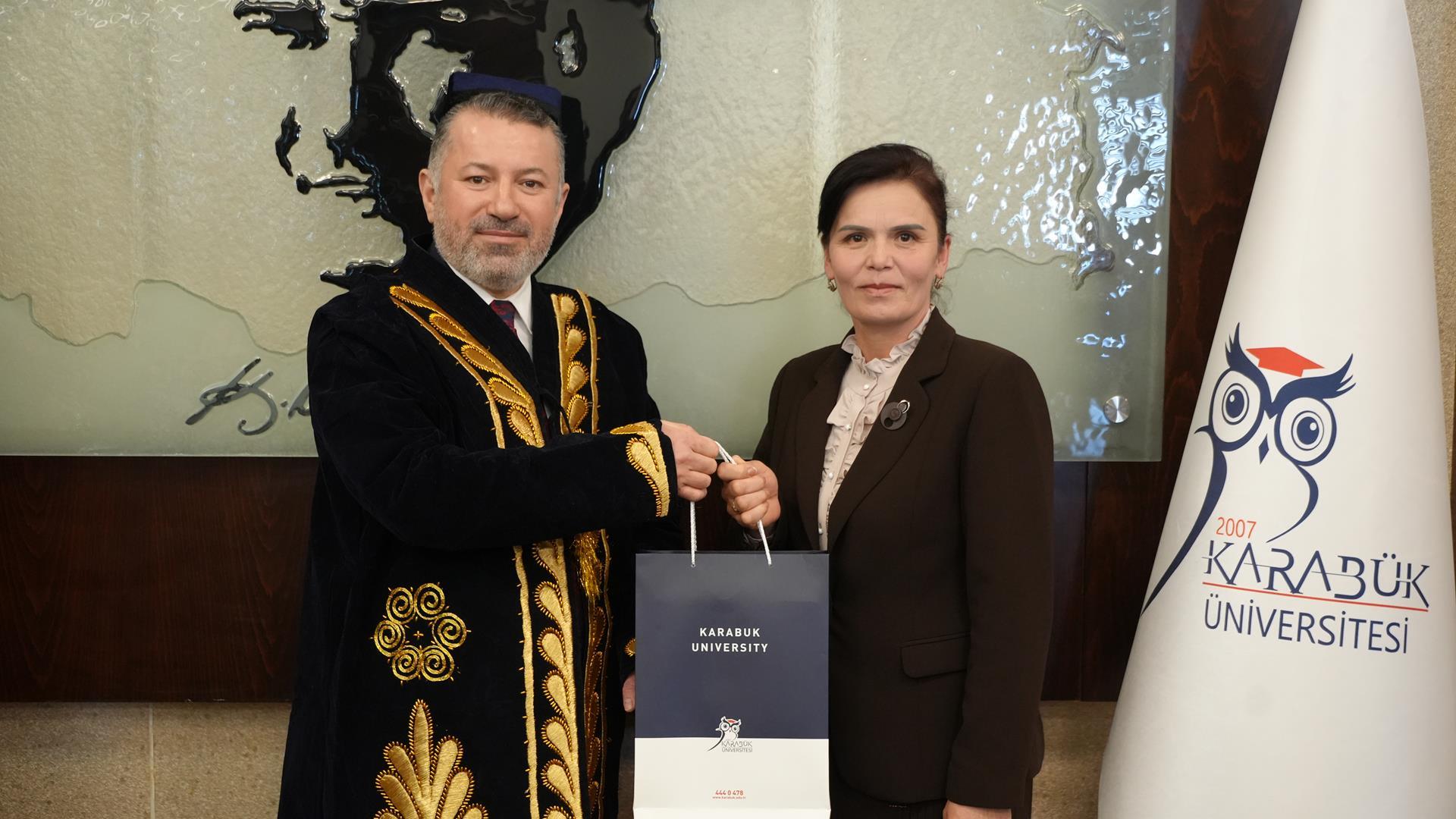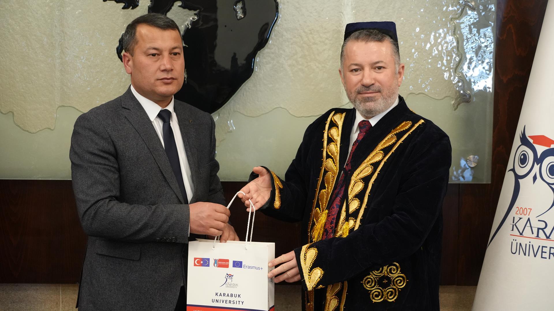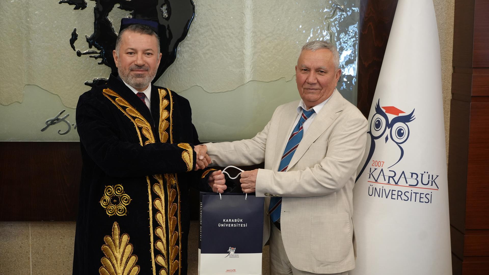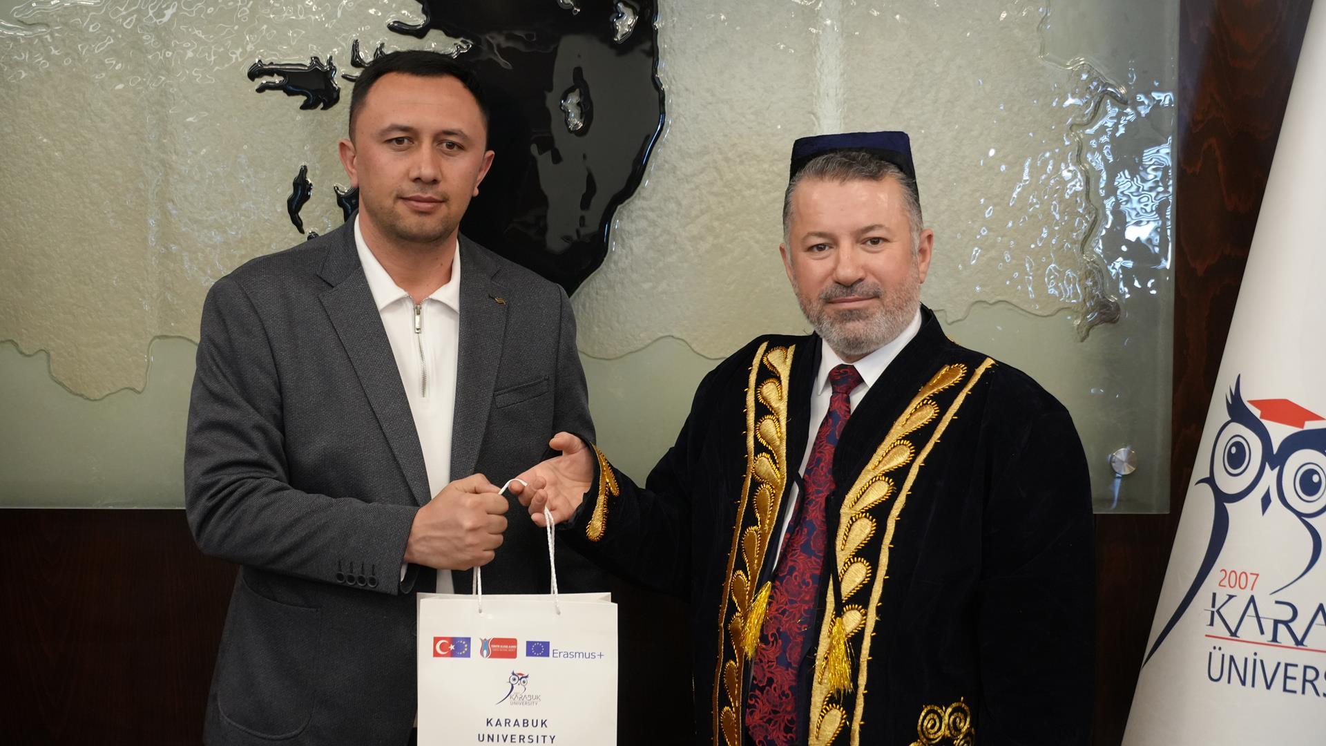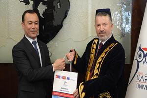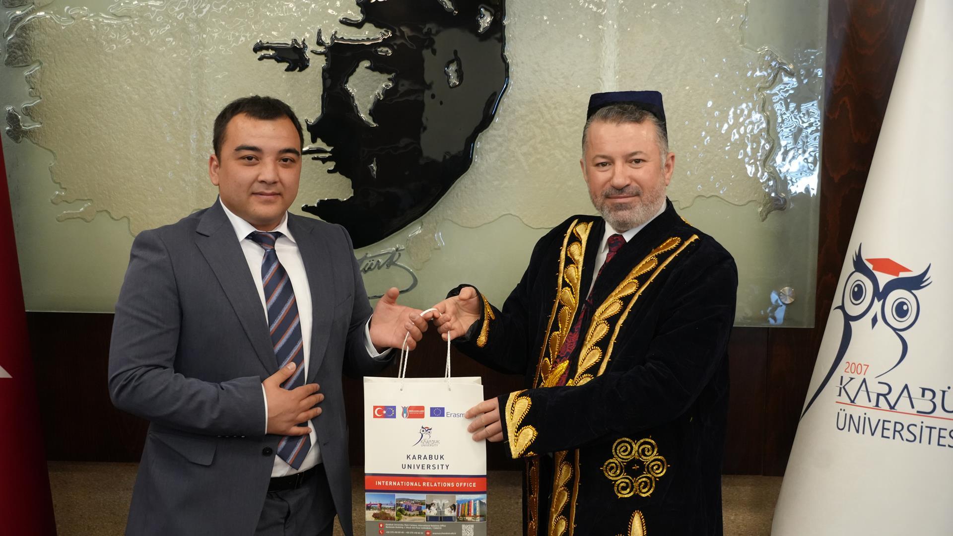 Karabük Üniversitesi Rektörü Prof. Dr. Fatih Kırışık, Özbekistan Taşkent Beşeri Bilimler Üniversitesi Rektörü Prof. Dr. Kahramon Sabirov ve beraberindeki heyeti misafir etti.