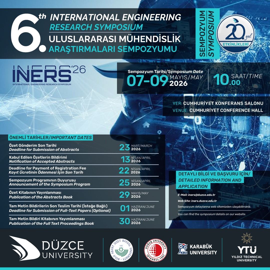 Mühendislik bilimleri alanında uluslararası bir bilimsel platform niteliği taşıyan INERS, bu yıl da dünyanın farklı ülkelerinden akademisyenleri, araştırmacıları ve sektör temsilcilerini bir araya getirmeyi hedefliyor. Sempozyum; mühendislik disiplinlerindeki güncel gelişmelerin, yenilikçi araştırma sonuçlarının ve uygulamaya dönük çalışmaların paylaşılmasına olanak sağlayacak.