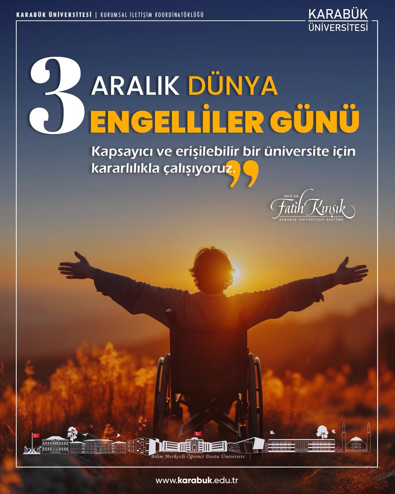 Karabük Üniversitesi Rektörü Prof. Dr. Fatih Kırışık, 3 Aralık Dünya Engelliler Günü dolayısıyla yayımladığı mesajda üniversitenin erişilebilirlik vizyonunu vurgulayarak şu ifadelere yer verdi: