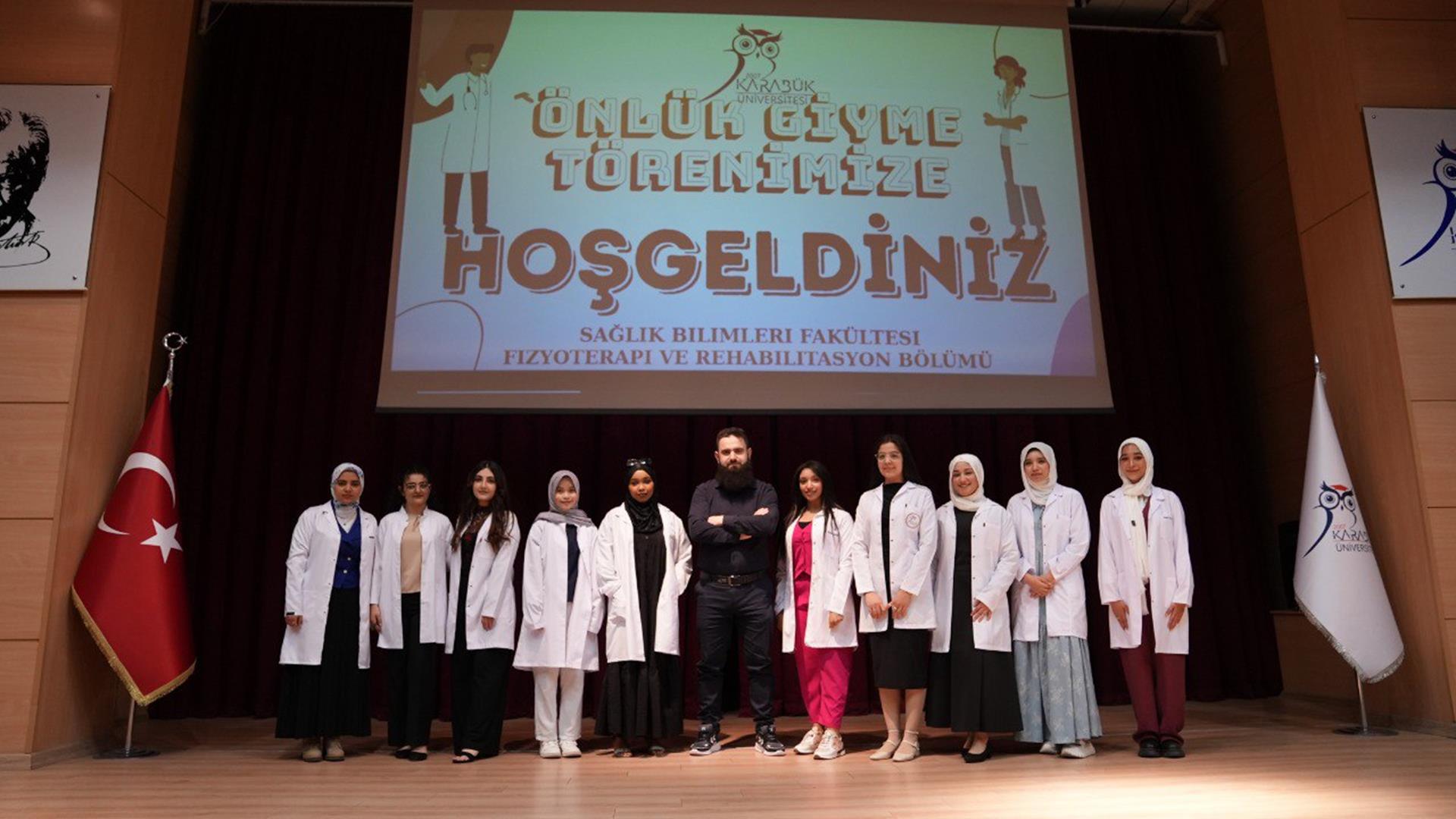 Karabük Üniversitesi Sağlık Bilimleri Fakültesi Fizyoterapi ve Rehabilitasyon Bölümü öğrencileri, mesleki kimliklerinin simgesi olan beyaz önlüklerini düzenlenen törenle giydi.