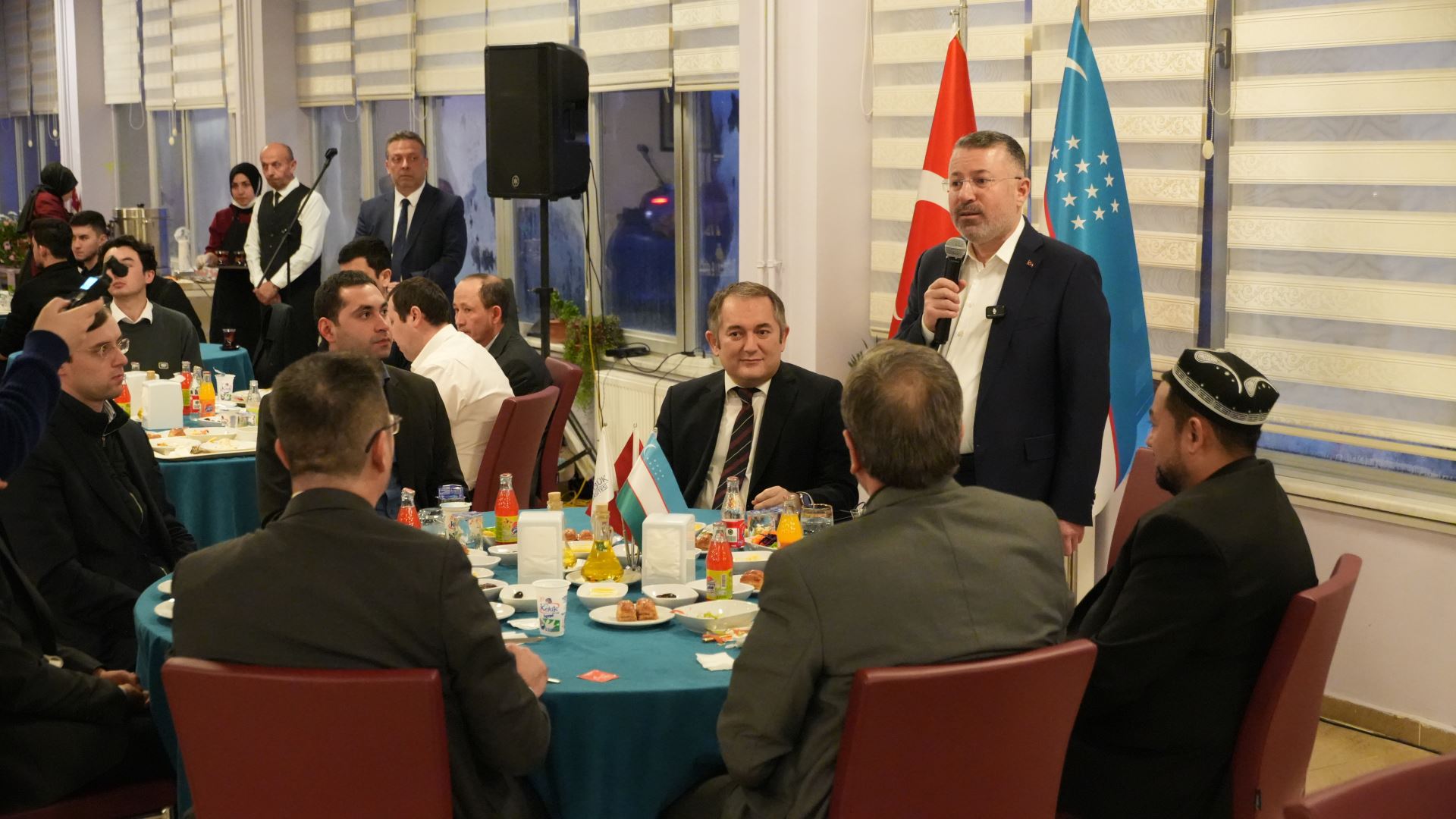 Karabük Üniversitesi Sosyal Yaşam Merkezinde düzenlenen iftar programına Karabük Üniversitesi Rektörü Prof. Dr. Fatih Kırışık’ın yanı sıra Rektör Yardımcıları Prof. Dr. Hasan Solmaz ve Prof. Dr. İsmail Rakıp Karaş, Özbekistan Elçiliği Siyaset Müşaviri Odil Gaffarov, Fergana İl Müftüsü Ubaydullah Abdullayev ile Ankara Konsolosu ve Yardımcısı Jahongir Mirzaev de katıldı. Program, yapılan duaların ardından sona erdi.