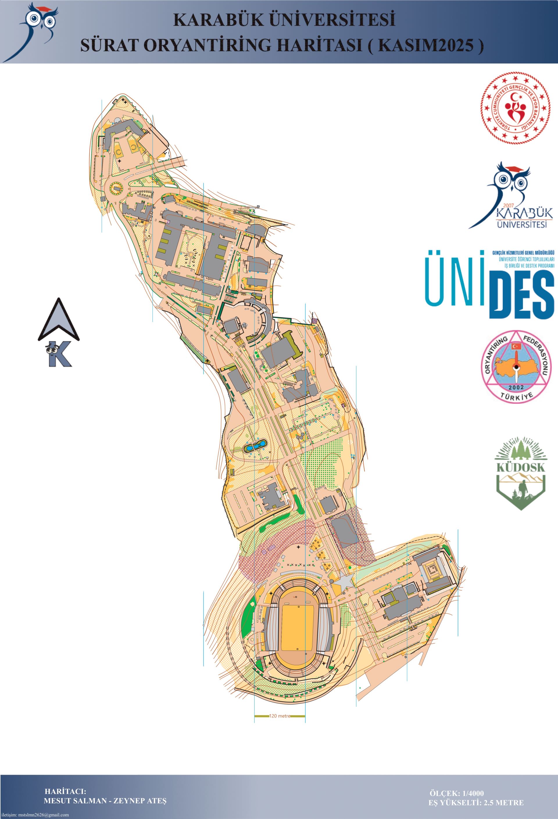 Karabük Üniversitesi Merkez Kampüsü için hazırlanan ve Karabük’te uluslararası standartlara sahip tek oryantiring haritası olma özelliği taşıyan çalışma, kampüsü ulusal ve uluslararası spor organizasyonlarının adresi haline getirmeyi hedefliyor.