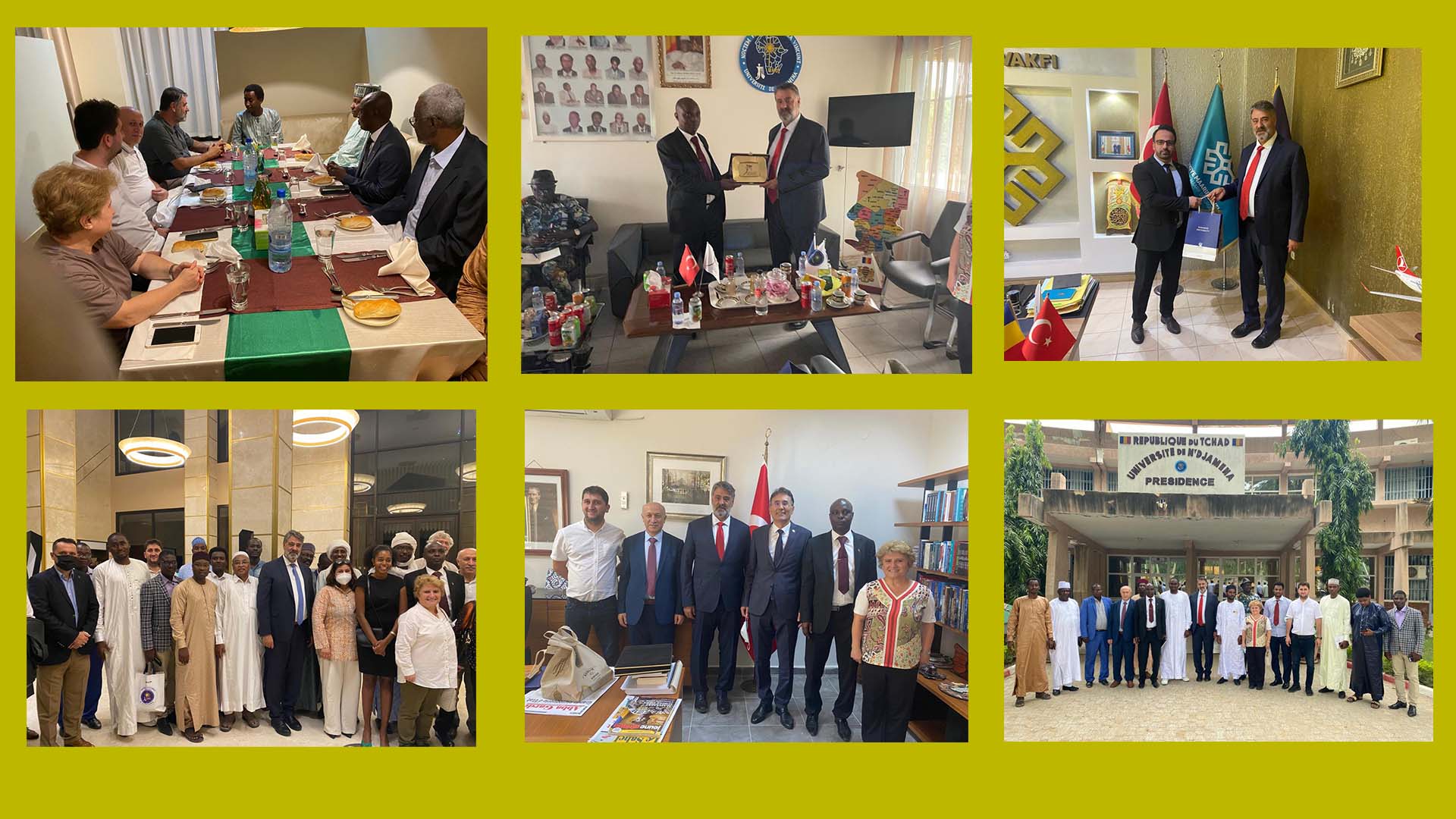 Rektör Polat’a Çad ziyaretinde Rektör Yardımcısı Prof. Dr. Mustafa Yaşar, Uluslararası İlişkiler Koordinatörü Öğr. Gör. Oya Çepni Önalan ve Uluslararası Öğrenci Ofisi Koordinatörü Öğr. Gör. Kerim Tanış eşlik eden isimler oldu.