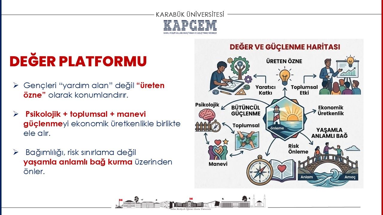 KBÜ KAPGEM’in hazırladığı rapor, bağımlılıkla mücadelede önleyici politikaları öne çıkarırken, gençleri üretken bireyler haline getirmeyi hedefleyen “Değer Platformu”na da dikkat çekti.