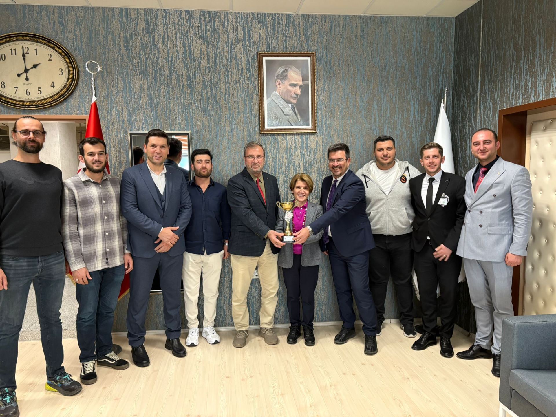 Elde ettikleri ikincilik kupasının ardından Karabük Üniversitesi Rektörlük Voleybol Takımı, Rektör Yardımcıları Prof. Dr. Hasan Solmaz, Prof. Dr. Elif Çepni ve Prof. Dr. İsmail Rakıp Karaş’ı ziyaret etti. Rektör yardımcıları, takımı tebrik ederek başarılarının devamını diledi.