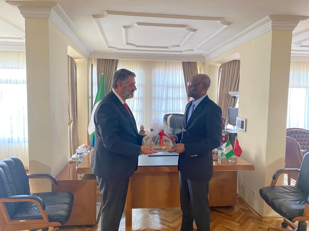 KBÜ Rektörü Polat ziyaretine Nijerya Ankara Büyükelçiliği ile devam etti. Nijerya Ankara Büyükelçisi İsmail Yusuf Abba ile görüşmesinde Rektör Polat ''Türkiye'de uluslararası öğrenci sayısı en yüksek olan üniversiteler arasında ilk sıralardayız. İş birliklerimizin artmasıyla daha da iyi yerlere geleceğiz inşallah.'' dedi.