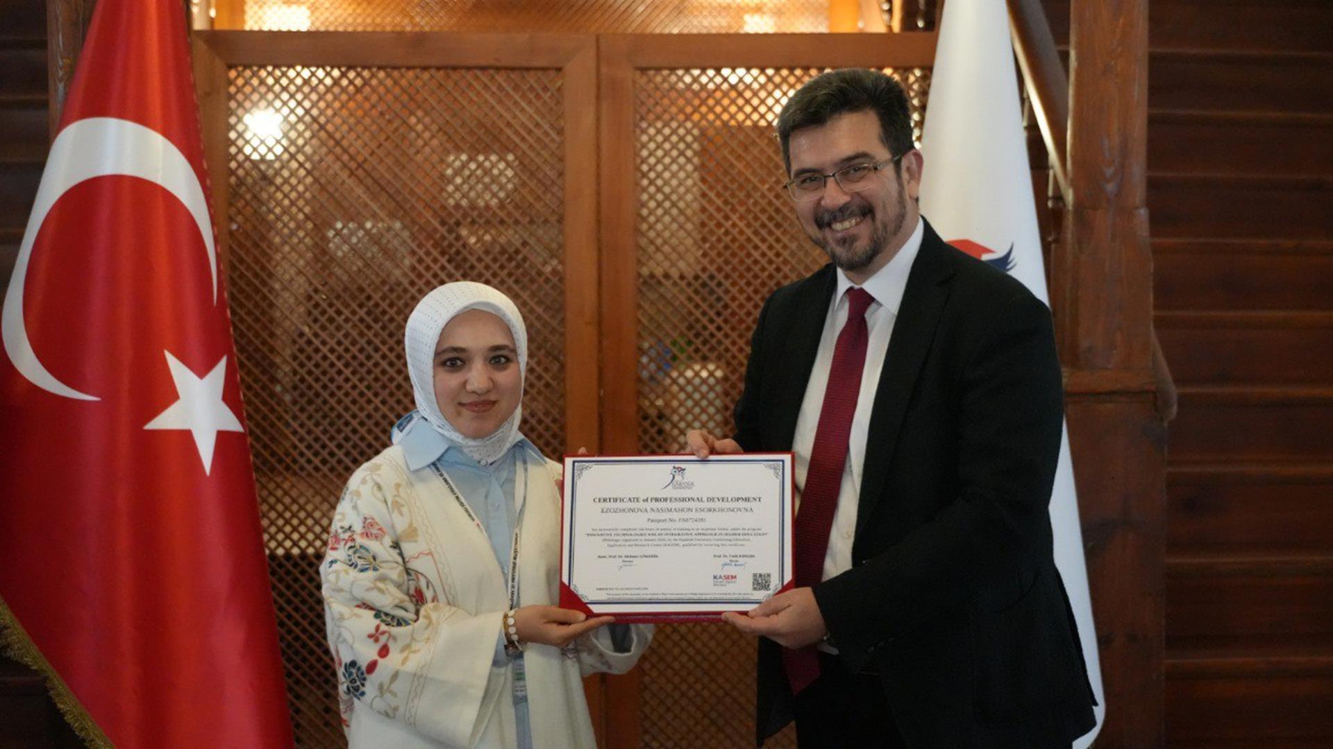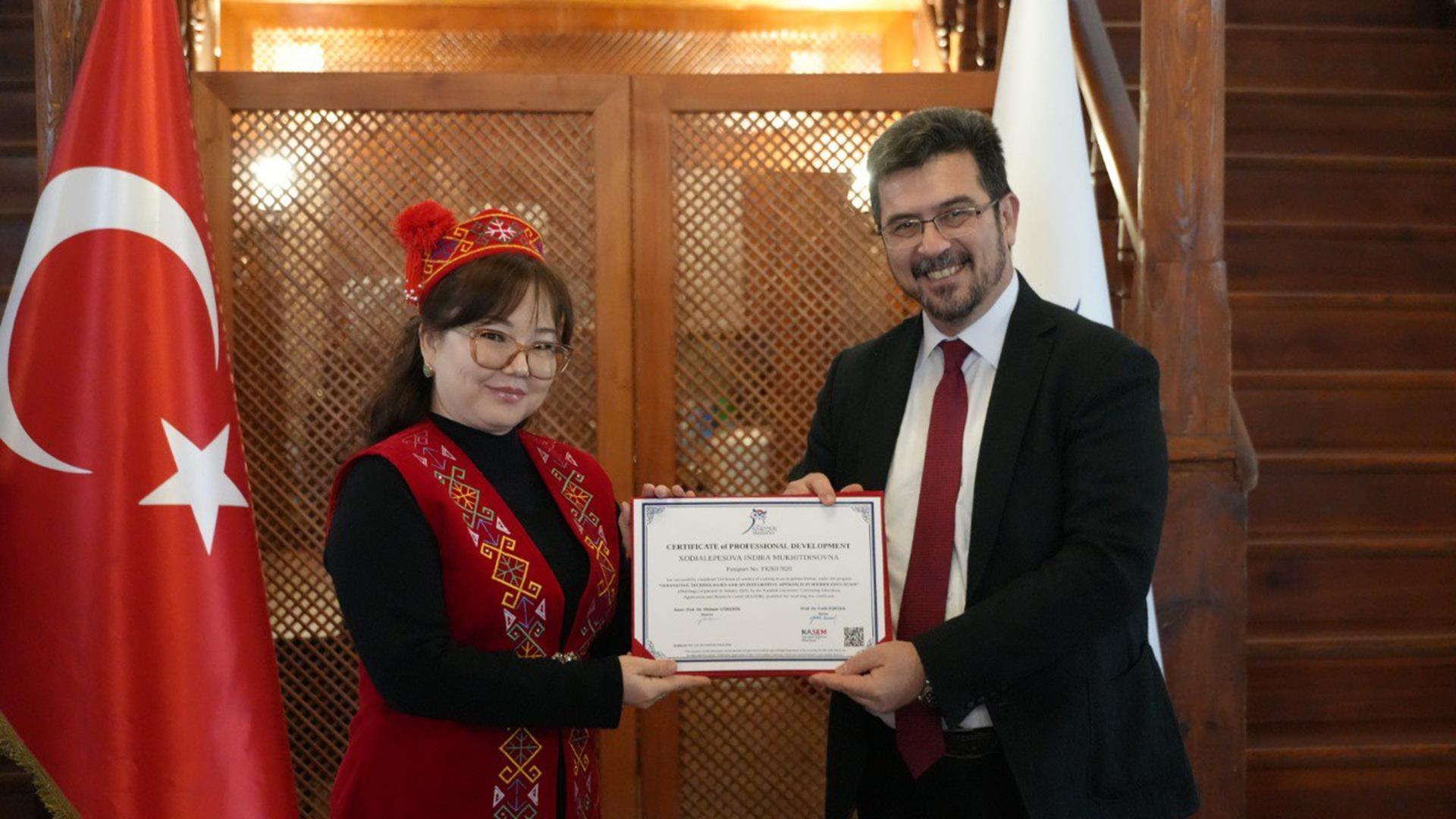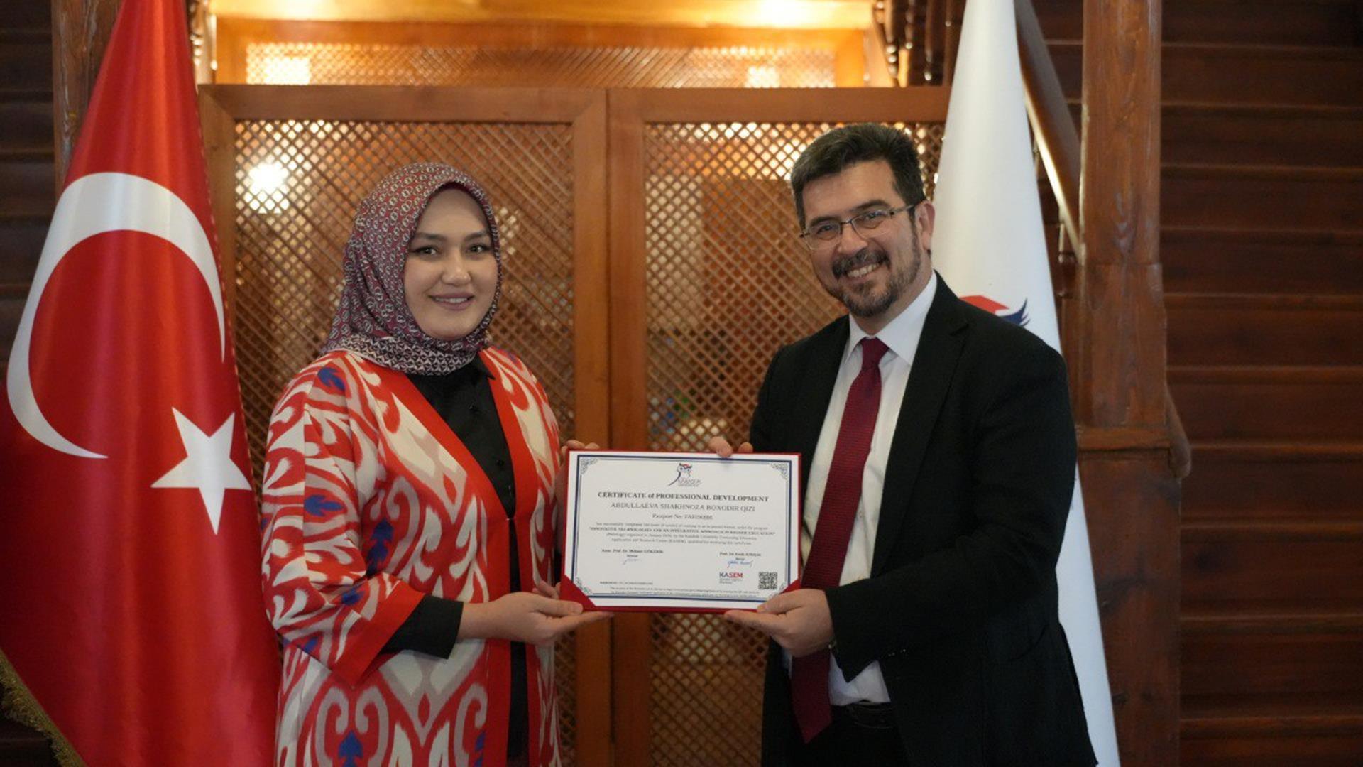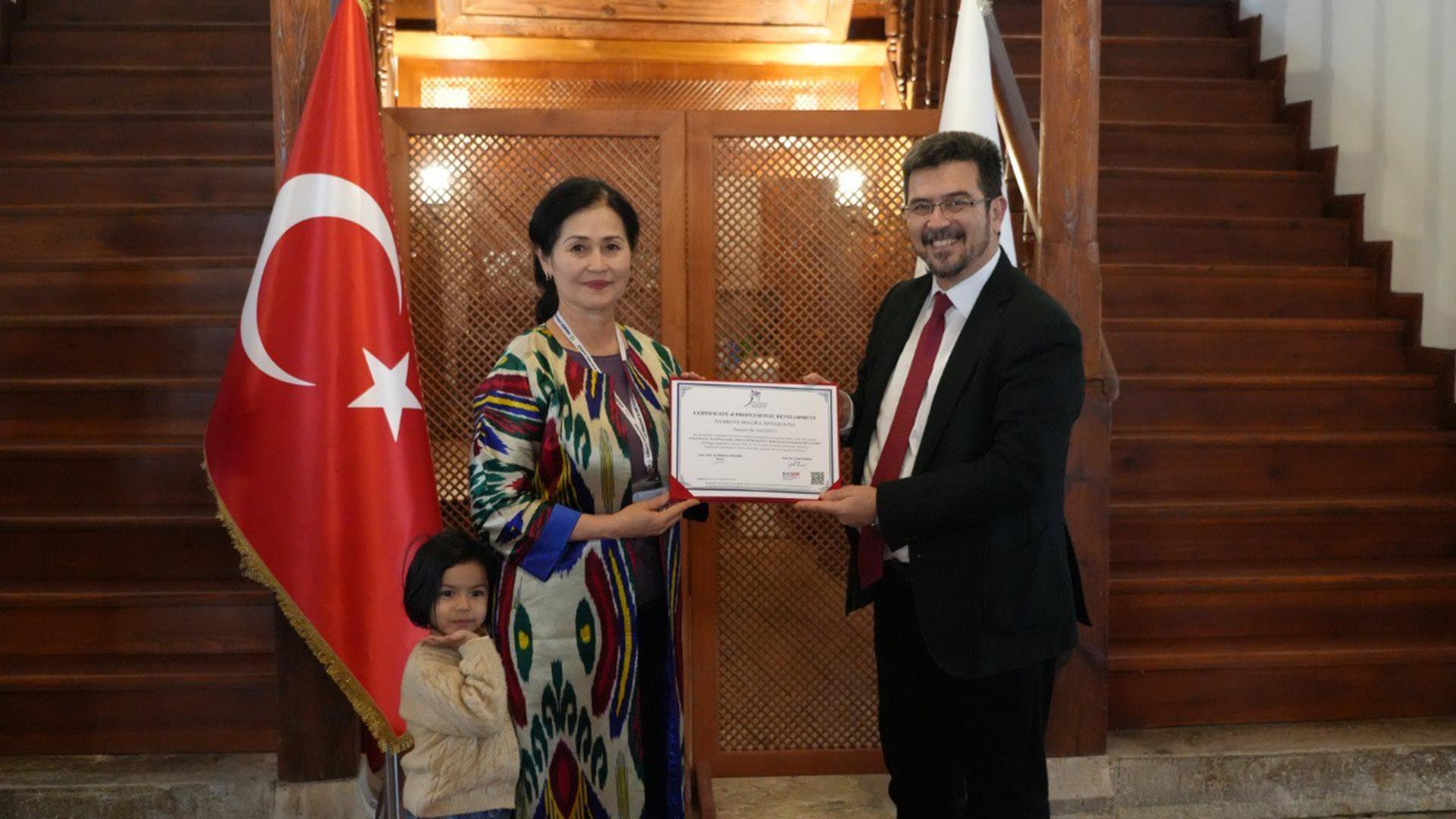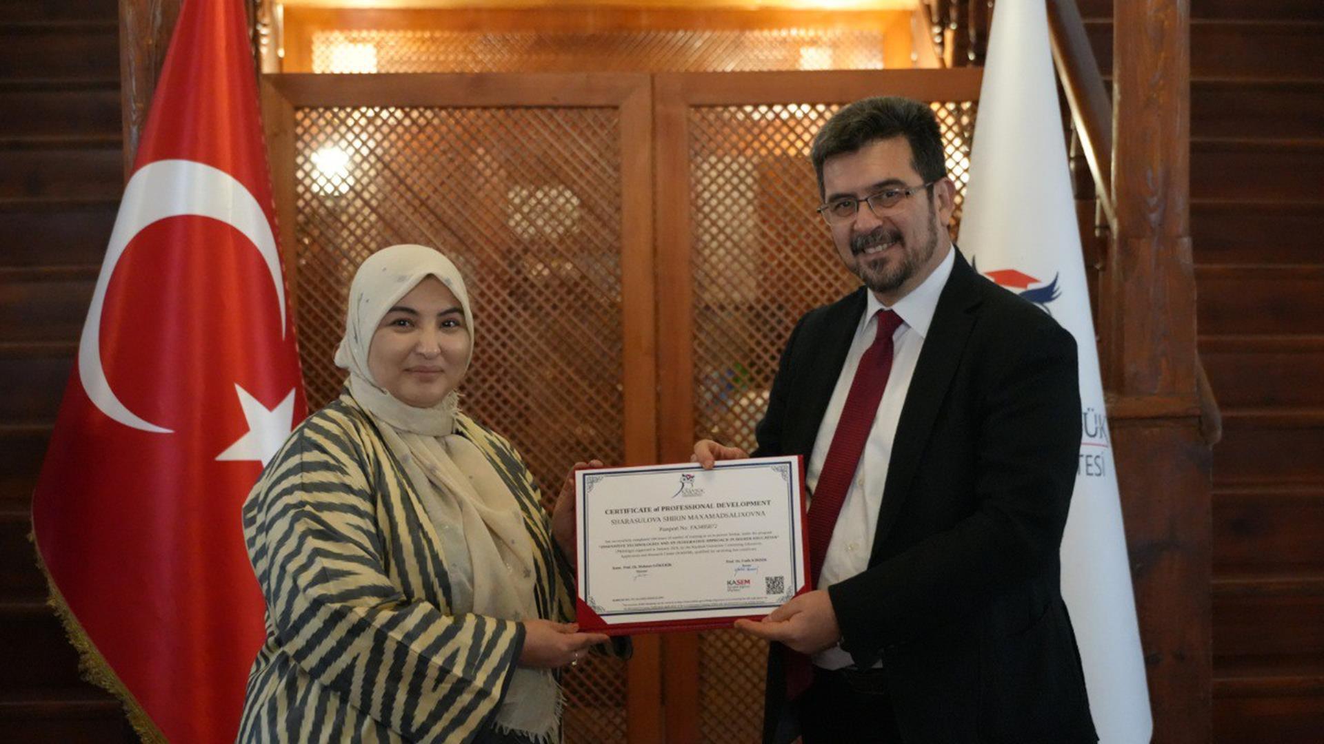 Programın sonunda KBÜ Safranbolu Kampüsü Taş Bina’da sertifika töreni düzenlendi. Törene, KBÜ Rektör Yardımcısı Prof. Dr. İsmail Rakıp Karaş, Oriental Üniversitesi Rektör Yardımcısı Prof. Dr. Nasirova Malika Anvarovna ile akademisyenler katıldı.