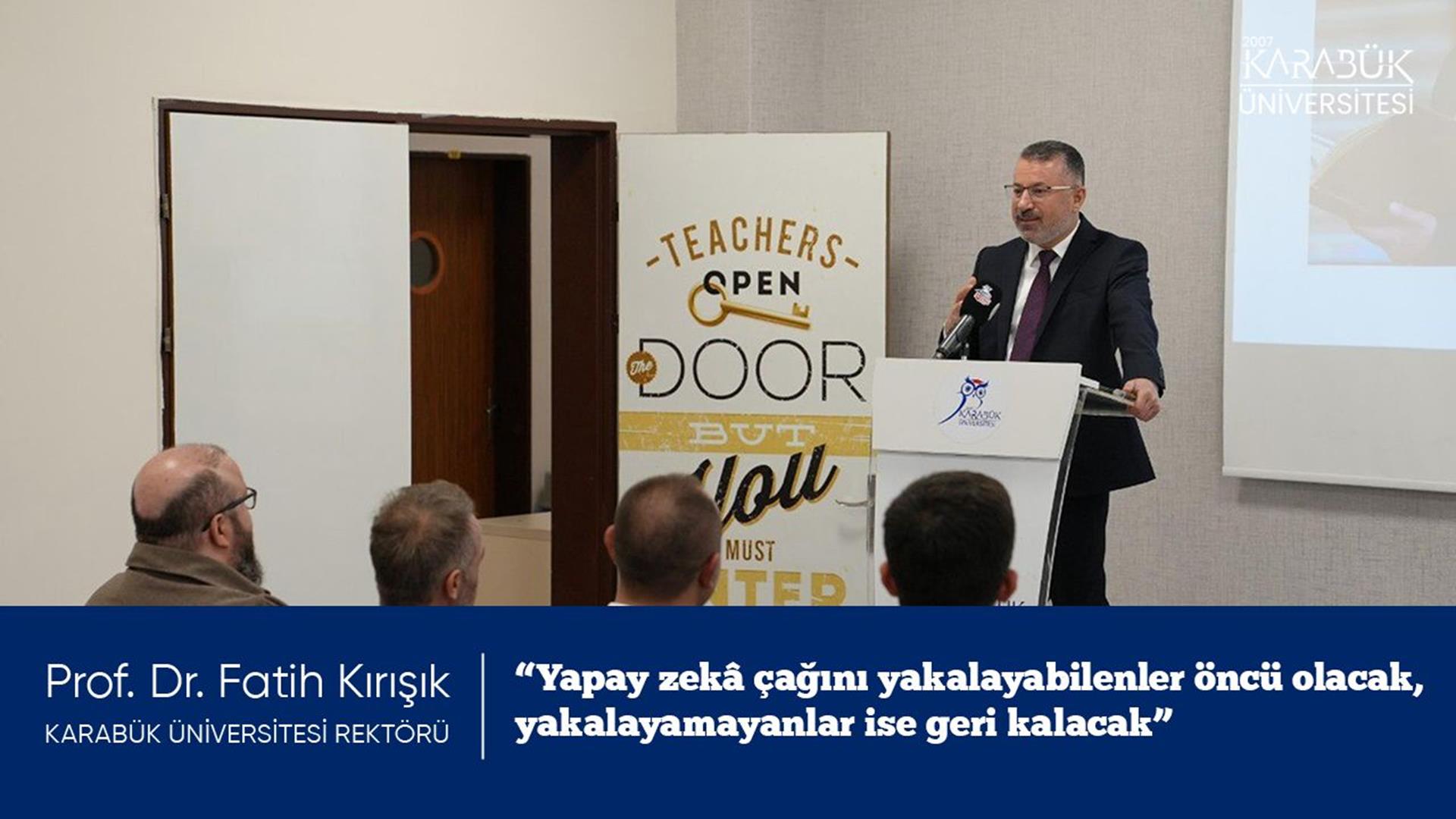 Karabük Üniversitesi Yabancı Diller Yüksekokulunun Akademik Kurul Toplantısı’na katılan Rektör Prof. Dr. Fatih Kırışık, dünyada yaşanan teknolojik dönüşümlerin önemine dikkati çekerek, yapay zekâ çağının sanayi devrimi kadar kritik bir dönüm noktası olduğunu söyledi.