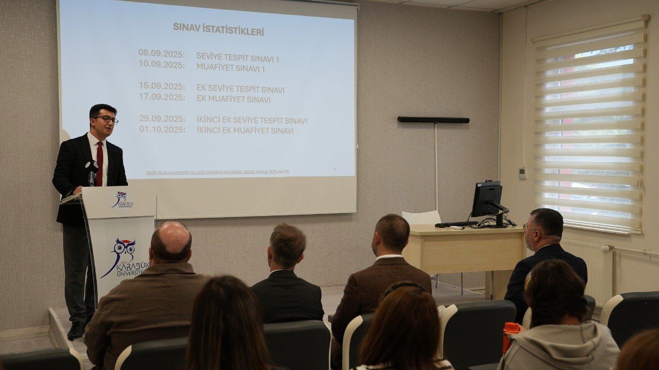 Karabük Üniversitesi (KBÜ) Rektörü Prof. Dr. Fatih Kırışık, Yabancı Diller Yüksekokulunun 2025-2026 Eğitim-Öğretim Yılı Güz Dönemi Akademik Genel Kurul Toplantısı’na katıldı.