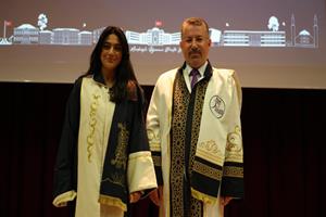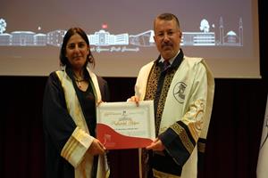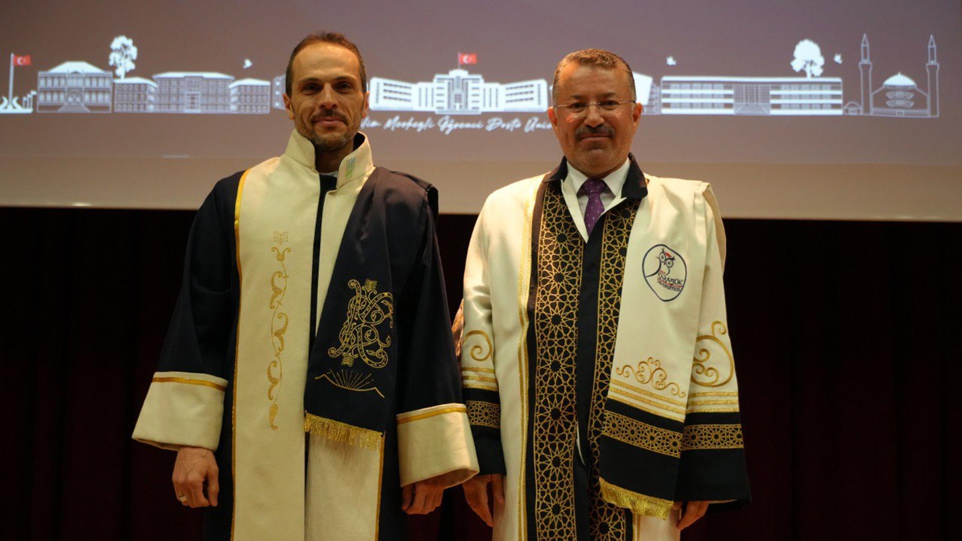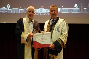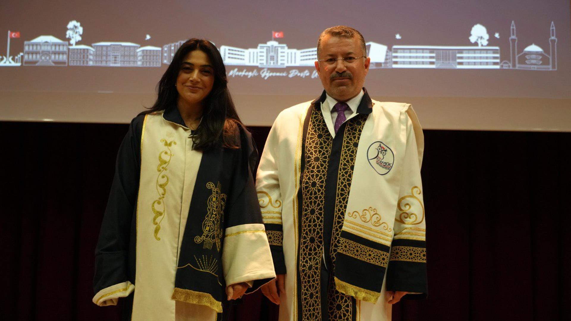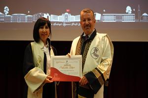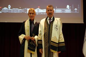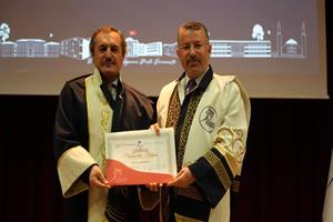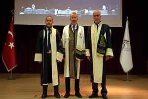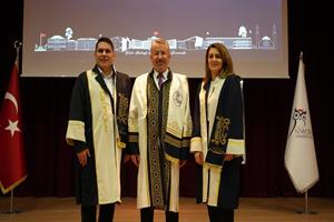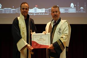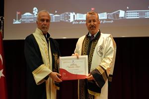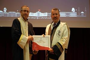 Konuşmanın ardından unvan alan 24 profesör, 20 doçent, 40 doktor öğretim üyesi cübbelerini giyerek belgelerini aldı.