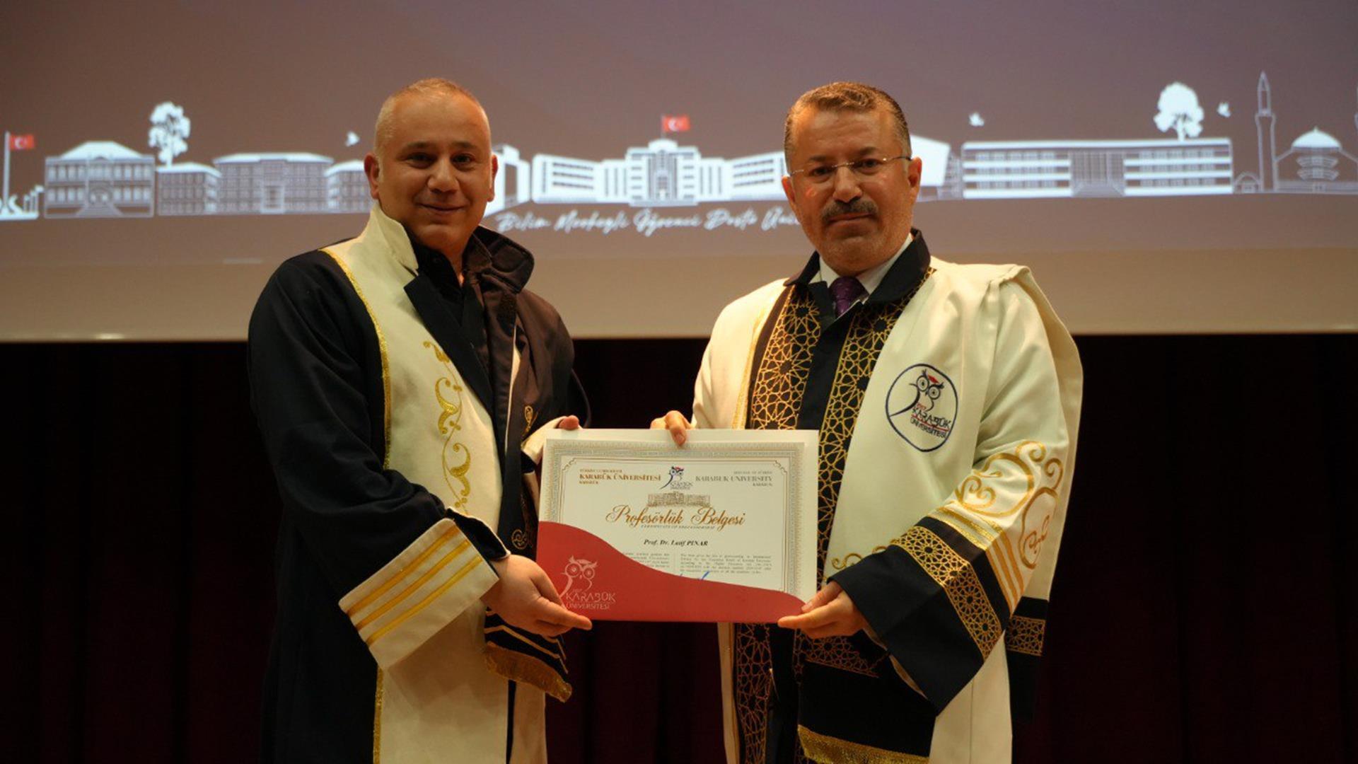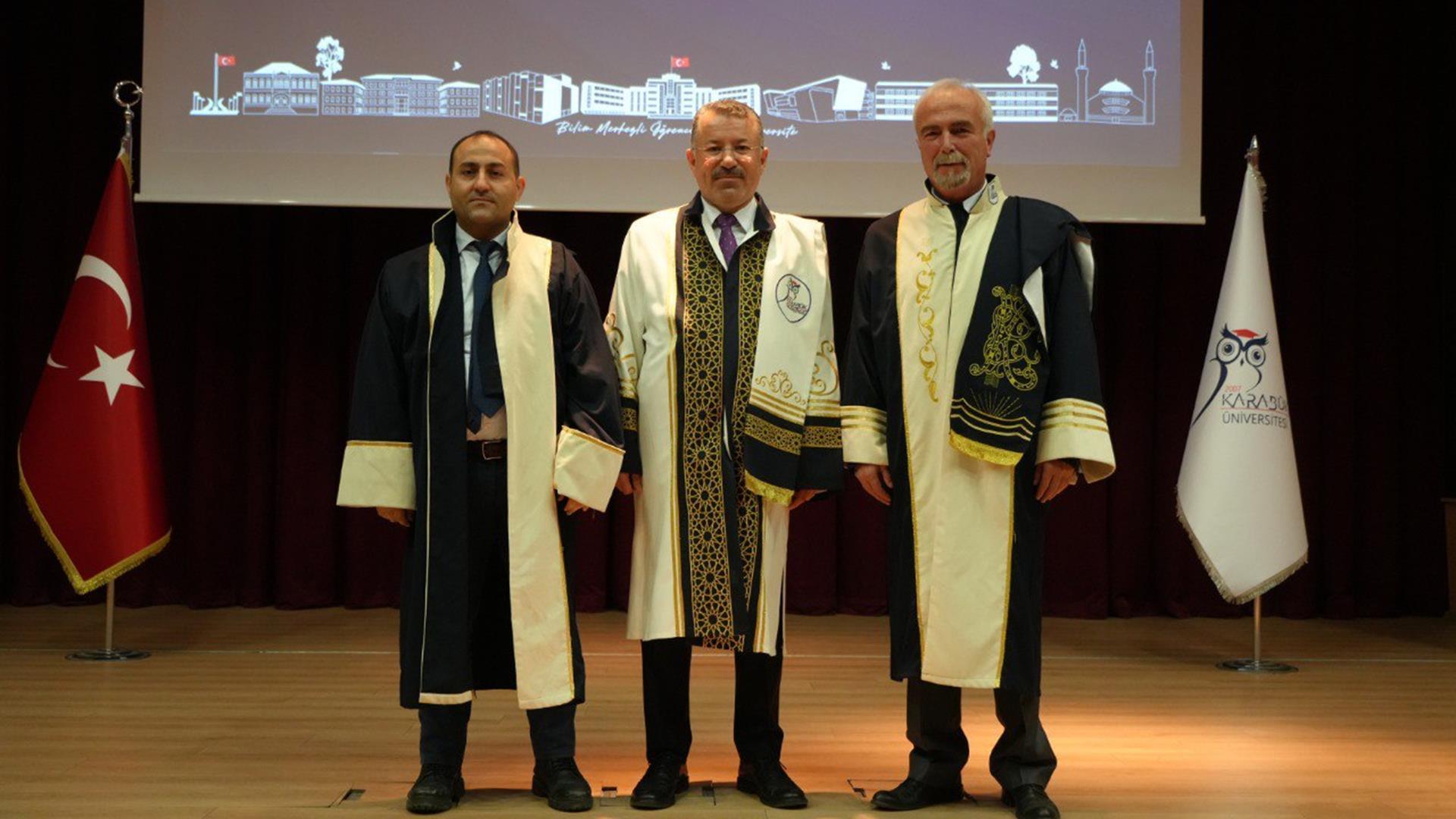 15 Temmuz Şehitler Konferans Salonu’nda geniş bir katılımla gerçekleştirilen törene; KBÜ Rektörü Prof. Dr. Fatih Kırışık, Eski Bursa Teknik Üniversitesi Rektörü Prof. Dr. Arif Karademir, KBÜ Rektör Yardımcısı Prof. Dr. Hasan Solmaz, akademik ve idari personel ile aileleri katıldı.